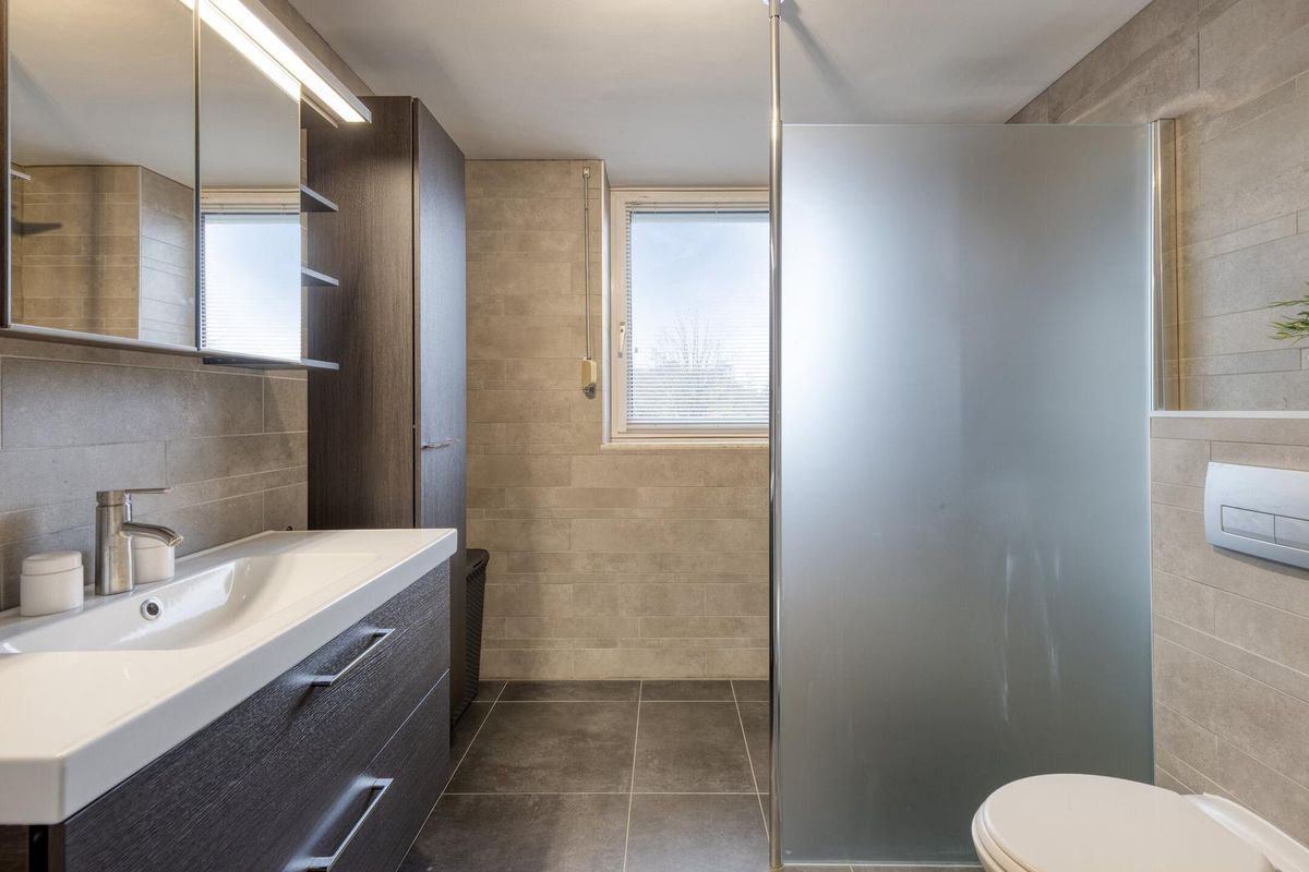 De gemoderniseerde badkamer (2019) is voorzien van een ruime inloopdouche met hand- en regendouche, een stijlvol badmeubel met wastafel, een wandcloset en elektrische vloerverwarming.