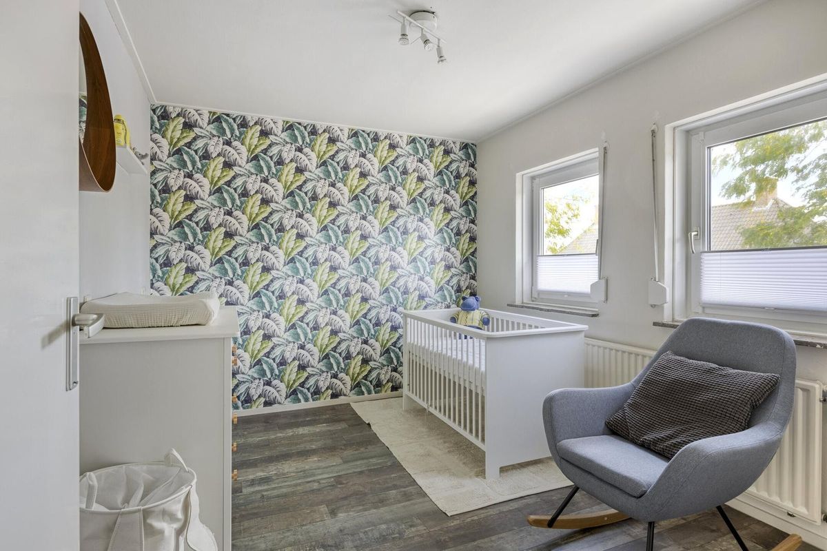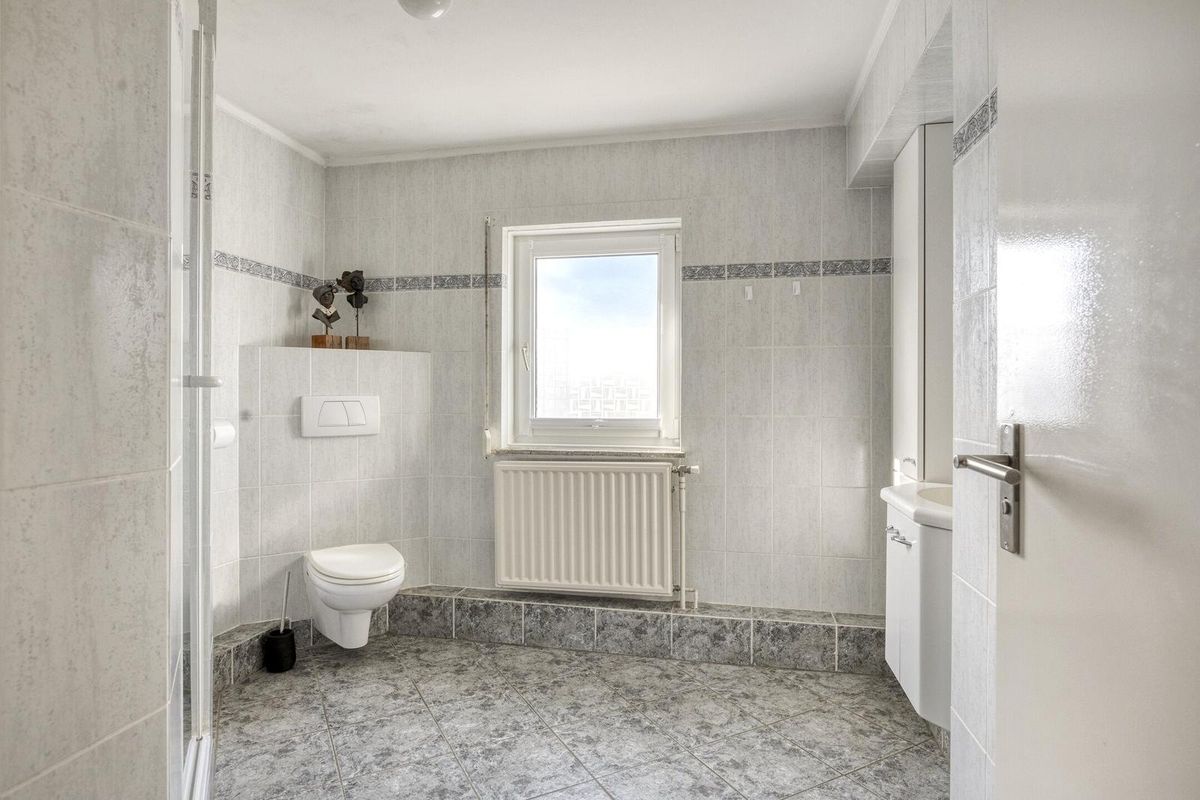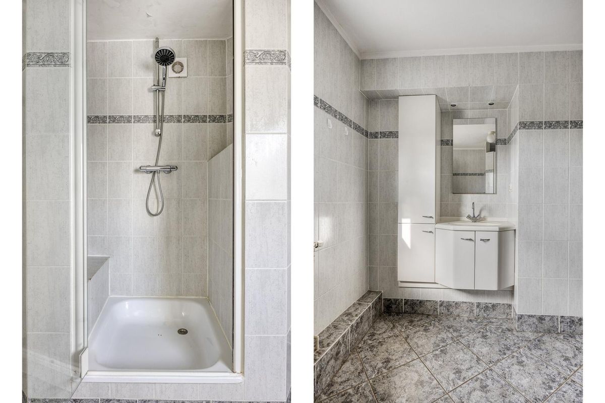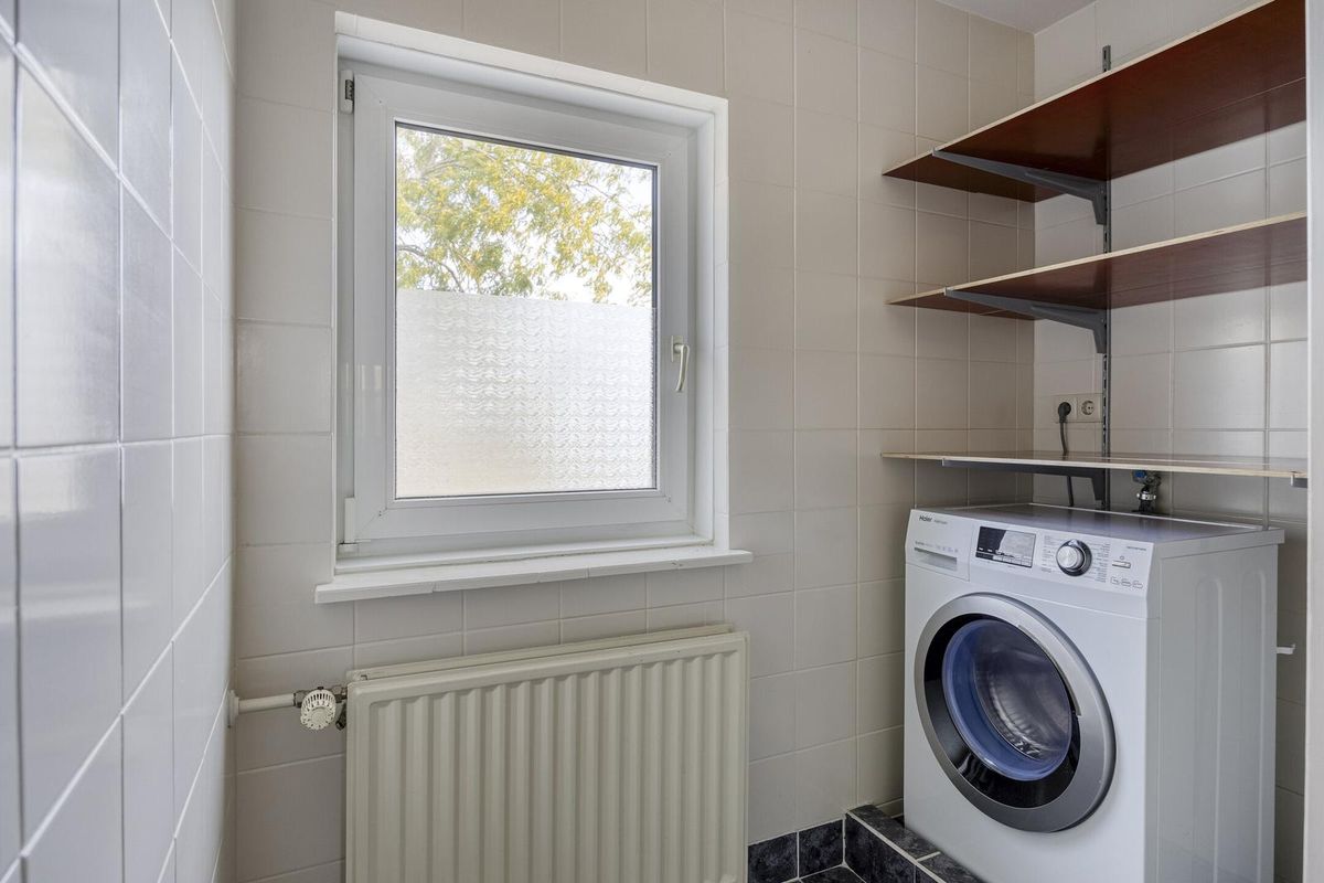 Vanaf de overloop is er toegang tot twee slaapkamers, een praktische wasruimte en een ruime badkamer. De badkamer heeft een tijdloze en neutrale uitstraling en is uitgerust met een douche, toilet en een fraai in een nis geplaatst wastafelmeubel met inbouwspotjes. Beide slaapkamers beschikken over een vaste kast. Alle slaapkamers zijn voorzien van rolluiken, wat zorgt voor optimaal comfort en verduistering.