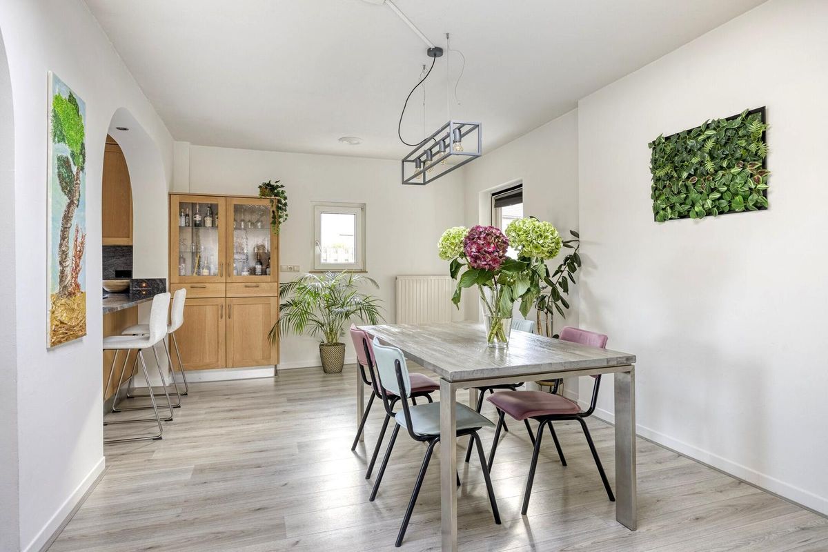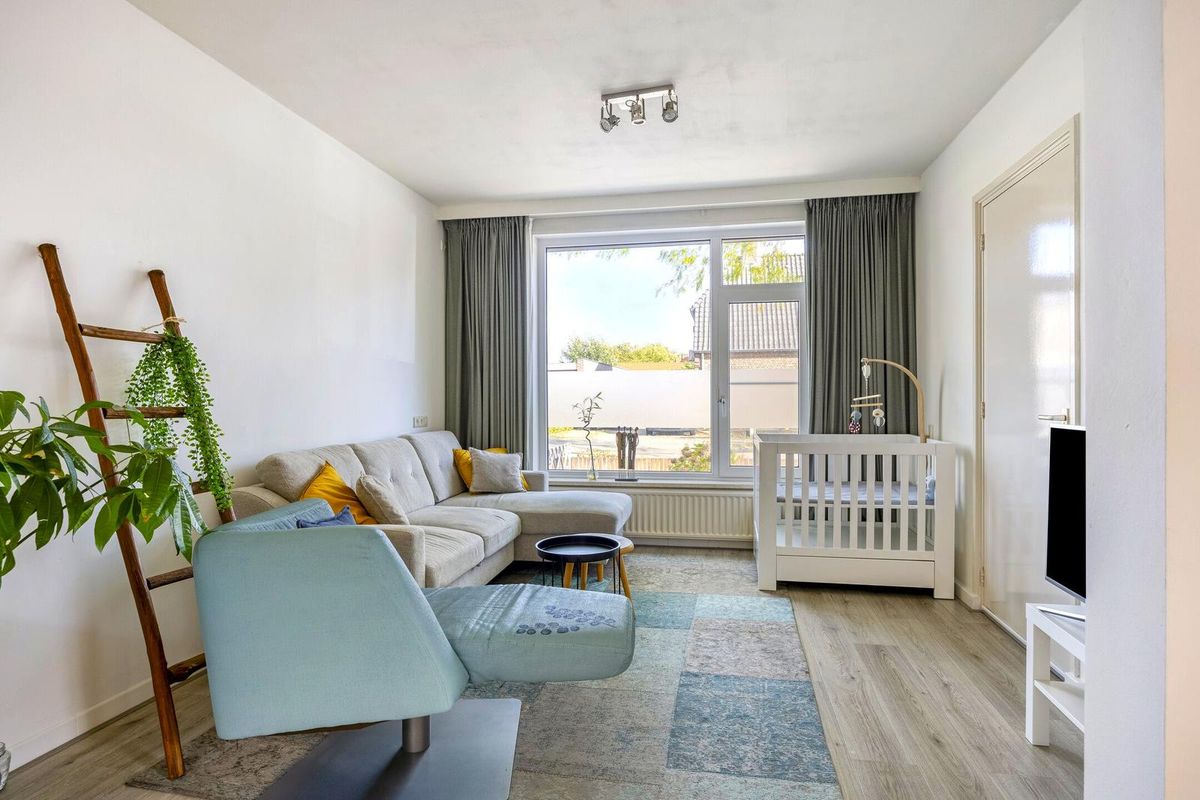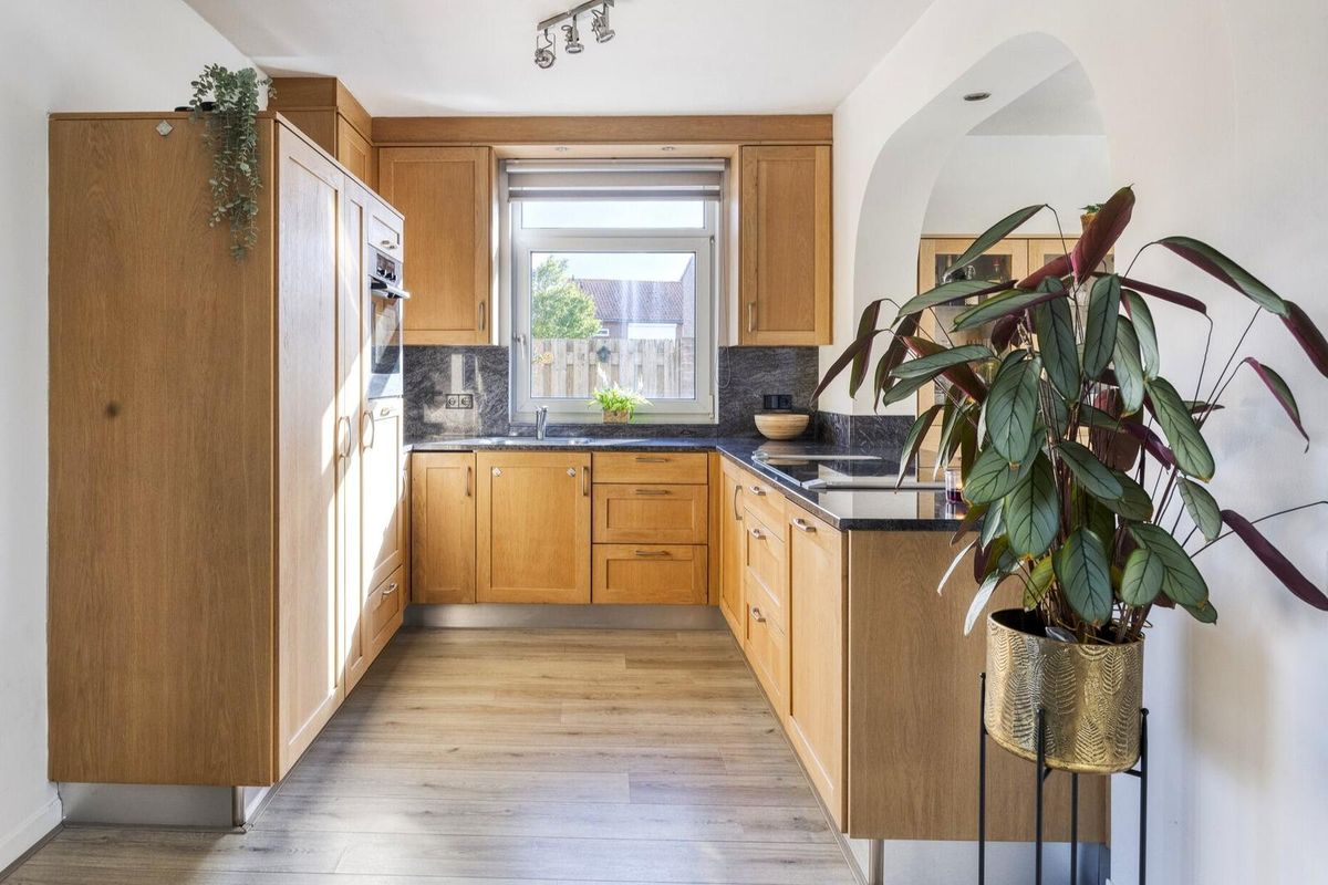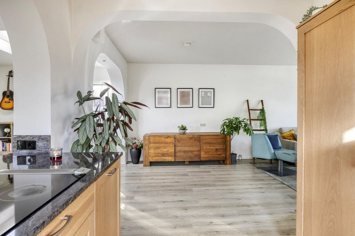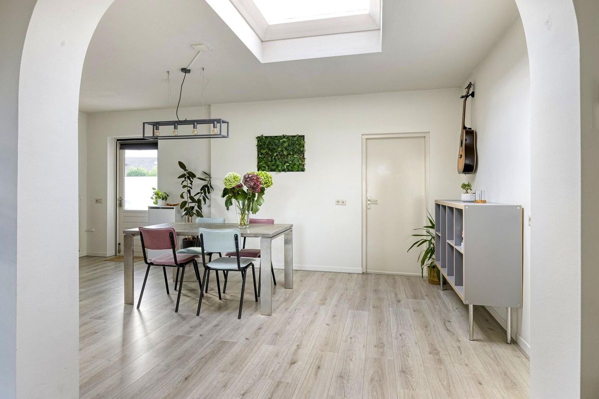 Bij binnenkomst valt direct de lichte en moderne uitstraling op. De woonkamer is strak afgewerkt met een glad plafond, gestucte wanden en een onderhoudsvriendelijke vloer. Dankzij de open verbinding met de keuken en eetkamer is er een royale leefruimte ontstaan, die uitnodigt tot gezellig samenzijn. De achterkamer is voorzien van een lichtkoepel, waardoor het geheel extra ruimtelijk en licht aanvoelt. De open keuken is voorzien van een granieten werkblad en achterwand, apothekerskast en beschikt over diverse inbouwapparatuur. Doordat de keuken in open verbinding staat met de eetkamer, is de keuken ook te gebruiken als een eetbar. Vanuit de keuken/eetkamer is er toegang tot de garage en de ruime kelder onder de garage. De gehele begane grond is voorzien van laminaat.