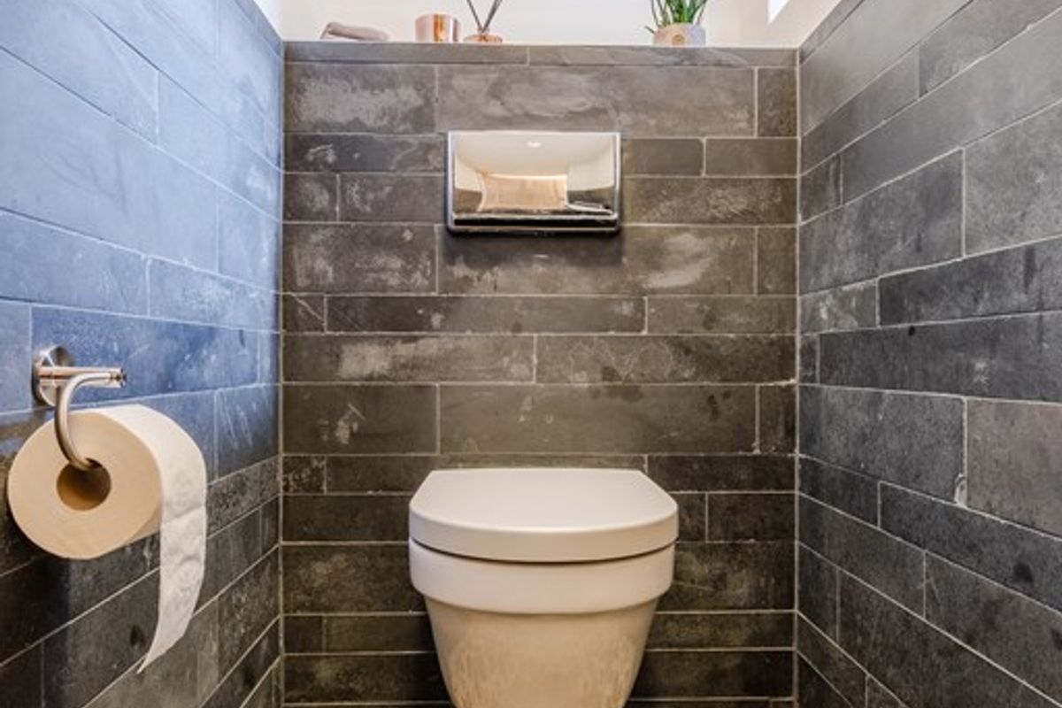 Het bijgebouw is volledig geïsoleerd, v.v. vloerverwarming en bestaat uit een kantoor/hobbyruimte (20 m²), zwevend toilet met fonteintje en een berging (9 m²).