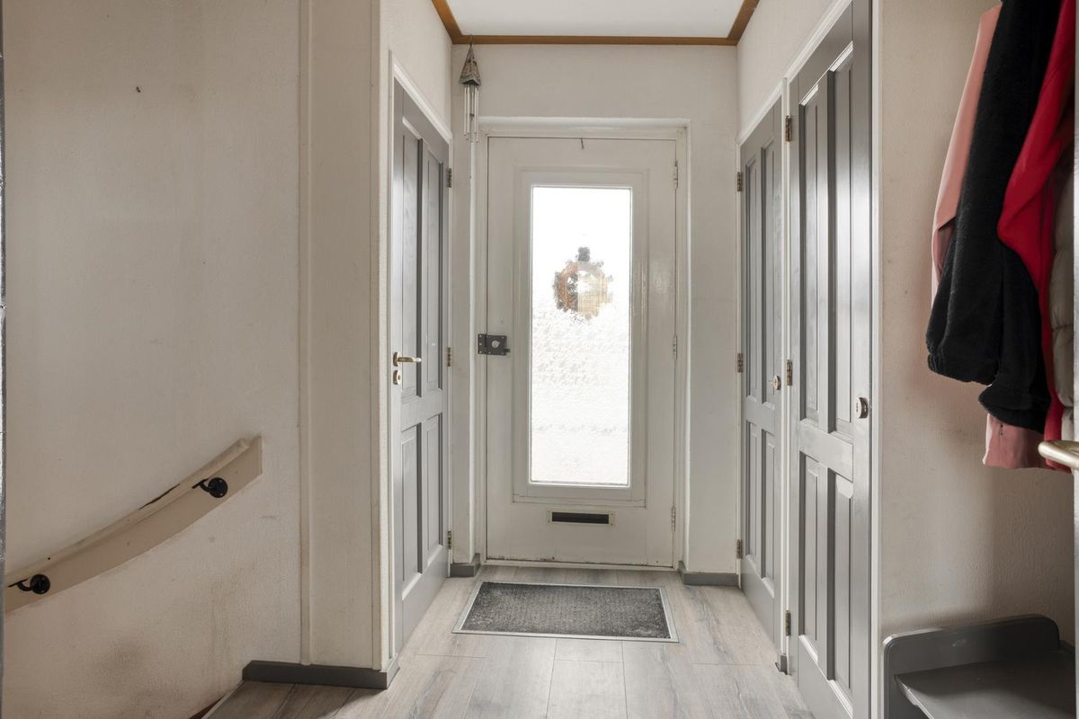 Via de entree komt u in de hal met toiletruimte, meterkast, bergkast en de trapopgang naar de verdieping en het souterrain.