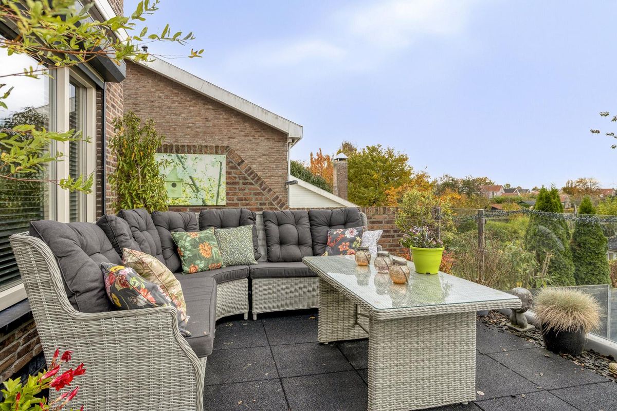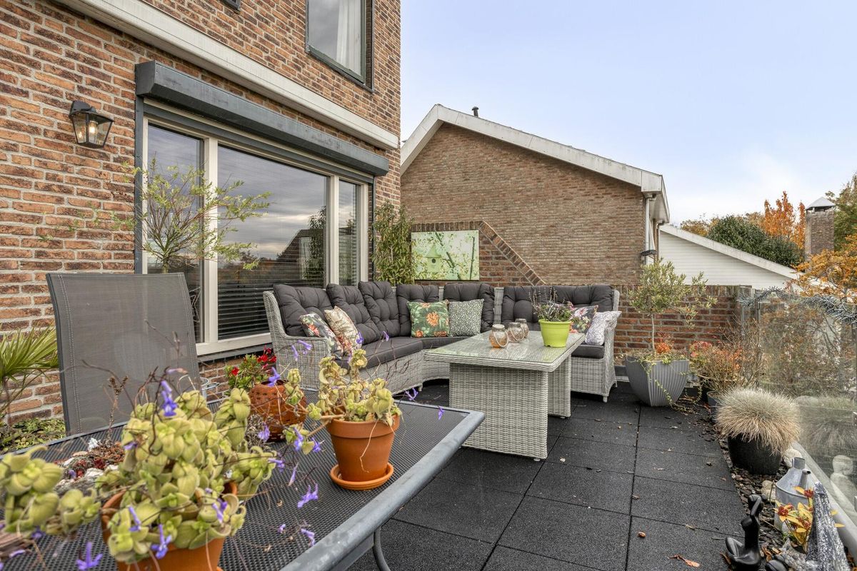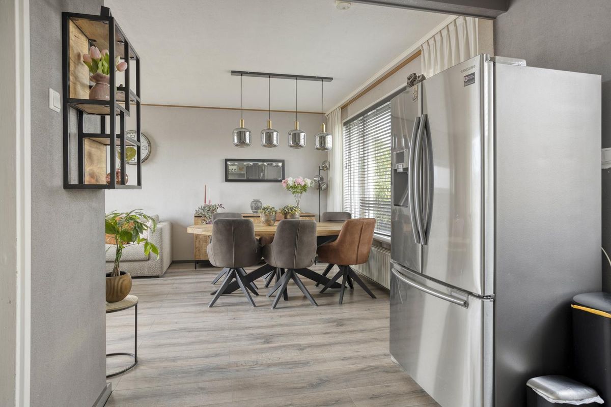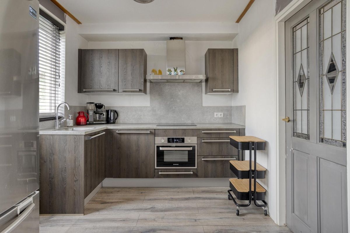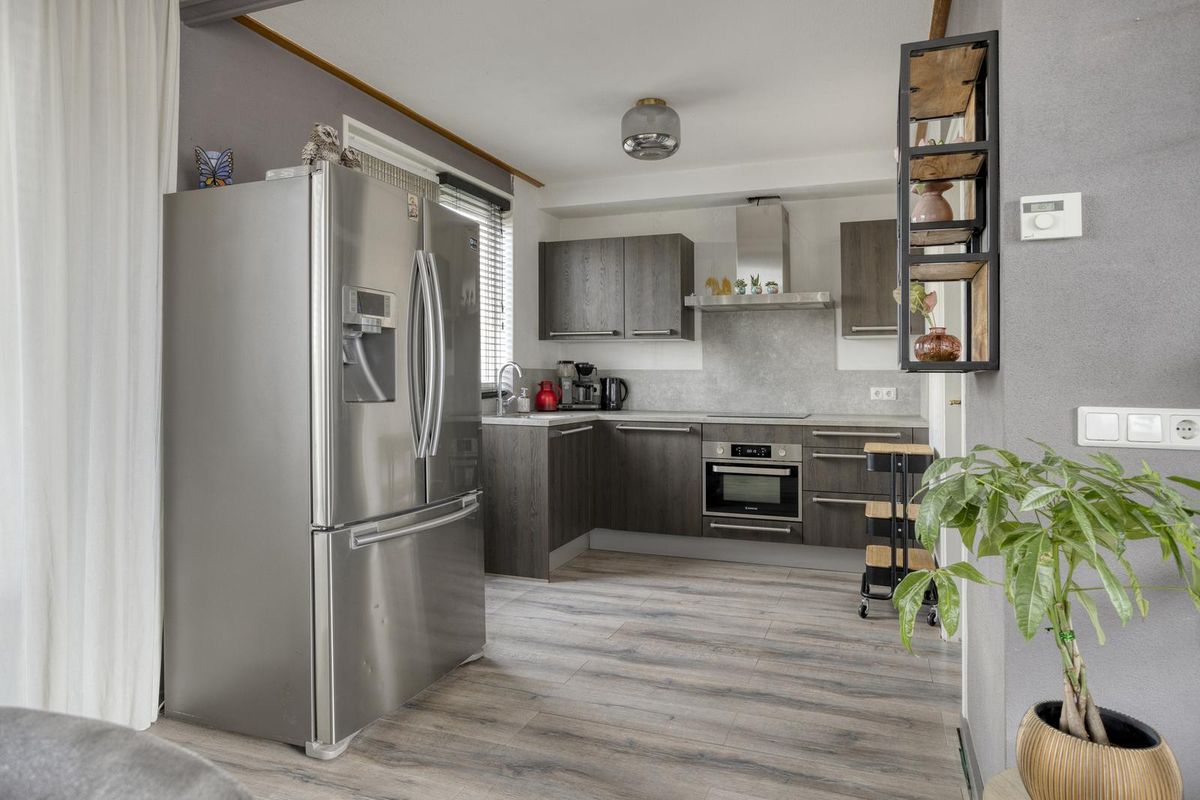 De halfopen keuken is voorzien van diverse inbouwapparatuur en biedt toegang tot het ruime achterterras van ca. 28 m², waar u geniet van de middag- en avondzon.