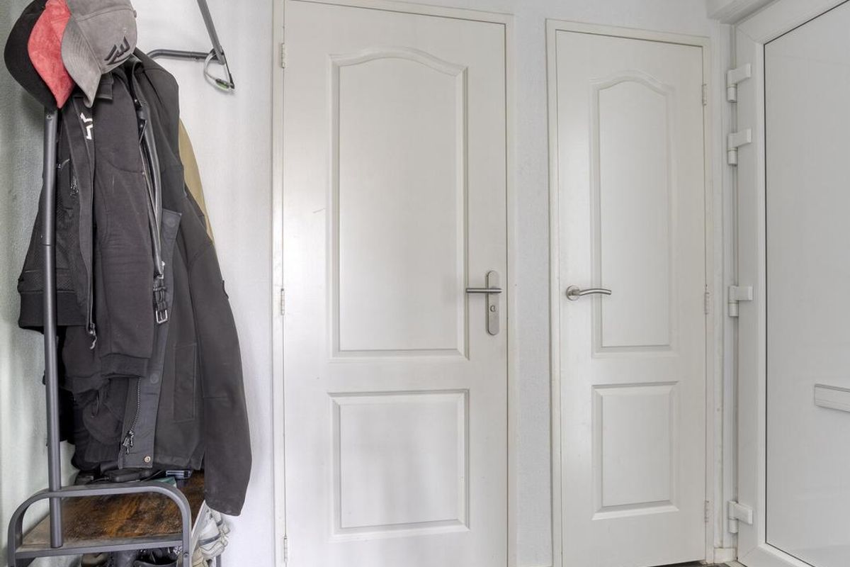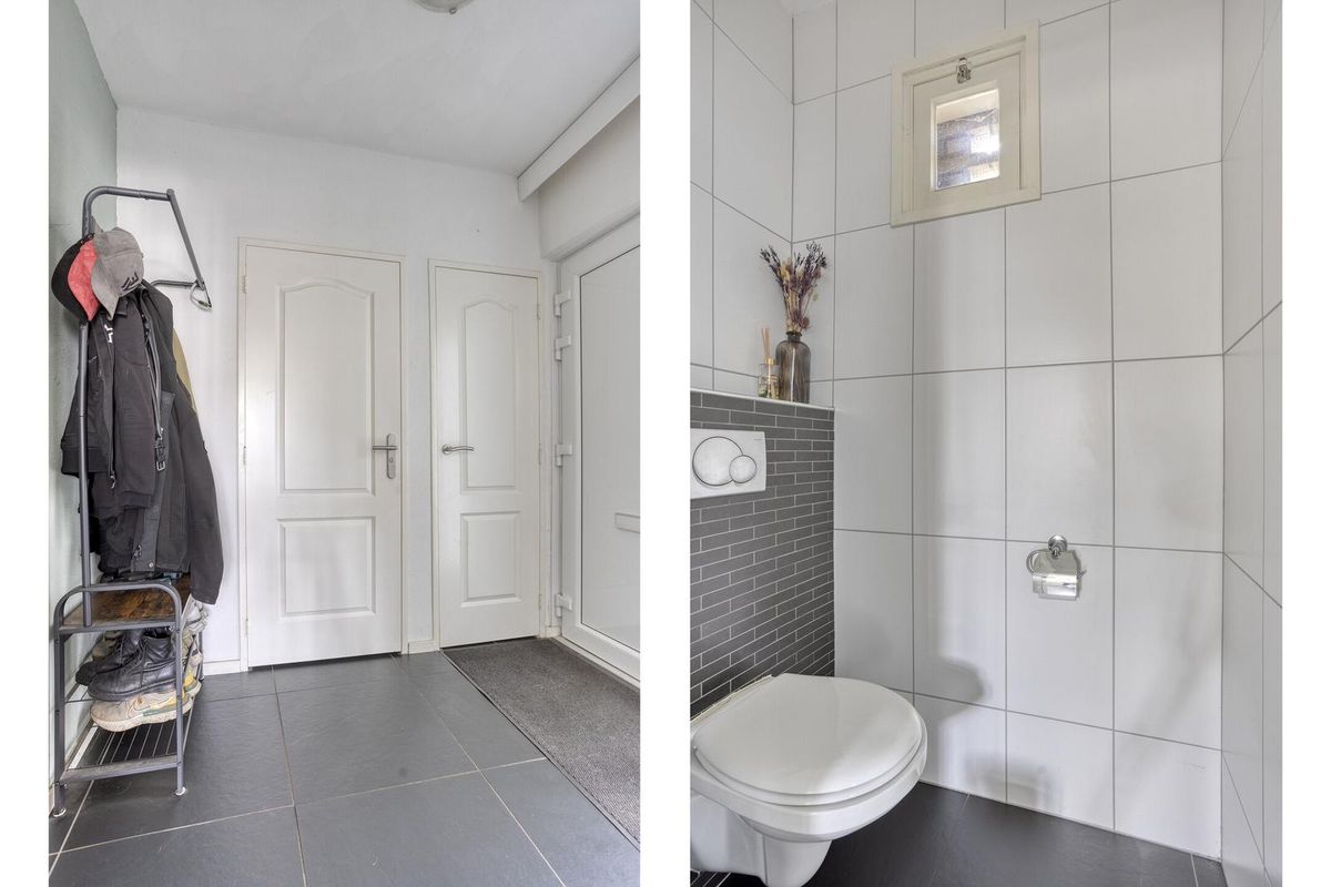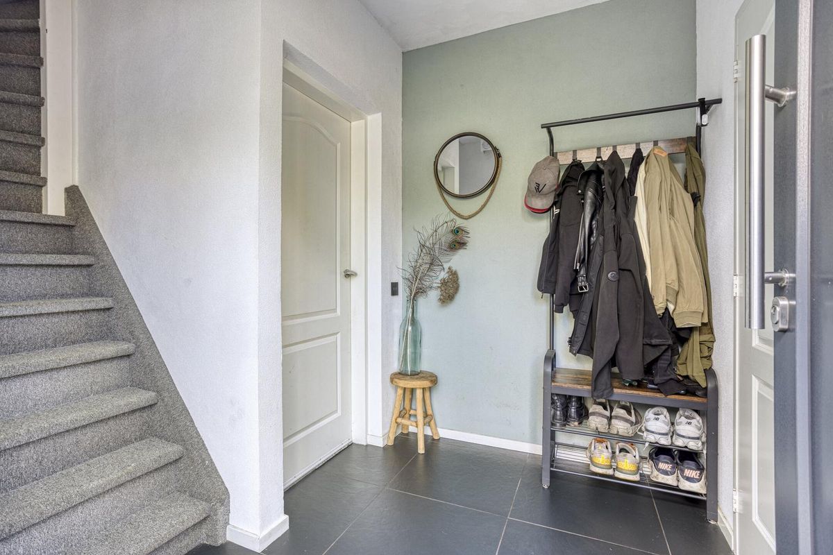 Via de riante oprit, geschikt voor meerdere auto’s, kom je binnen in een fijne hal. Hier vind je het toilet, de meterkast en natuurlijk de toegang tot de gezellige woonkamer.