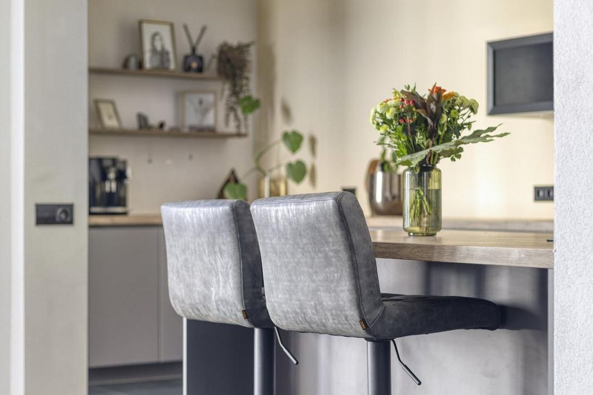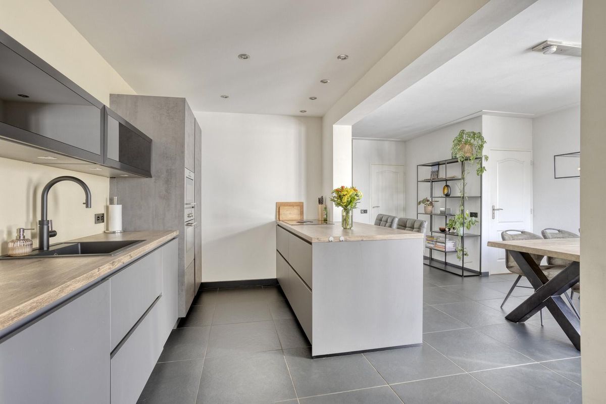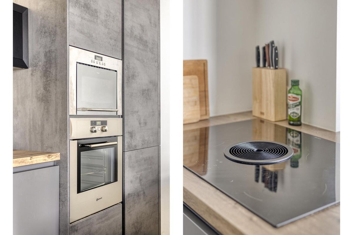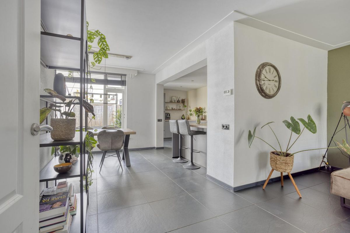 De woonkamer is ruim en heerlijk licht, met vloerverwarming over de hele begane grond voor extra comfort. De ruimte is praktisch in te delen, mede dankzij de verbinding met de eethoek. De gloednieuwe keuken is een waar kookparadijs: een groot werkblad, inductiekookplaat, Quooker en alle benodigde inbouwapparatuur. Zelfs de wasmachine en droger zijn hier slim weggewerkt.
