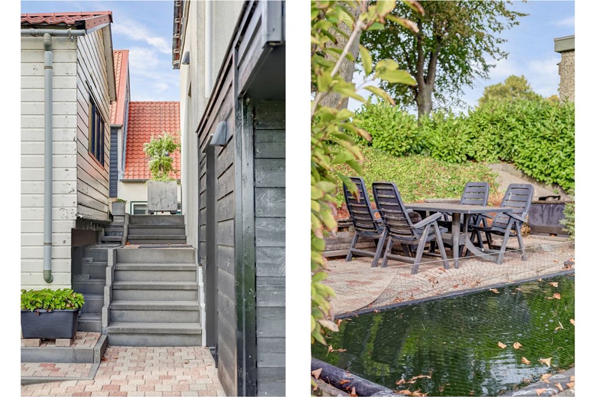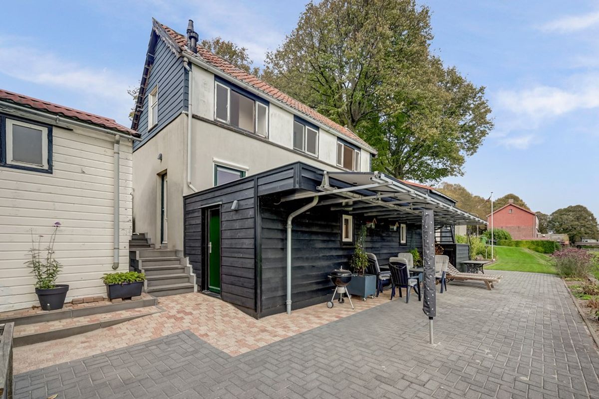 - een nieuwe inpandige bijkeuken/berging van circa 27 m² met stijlvolle zwarte geïmpregneerde rabat delen.
