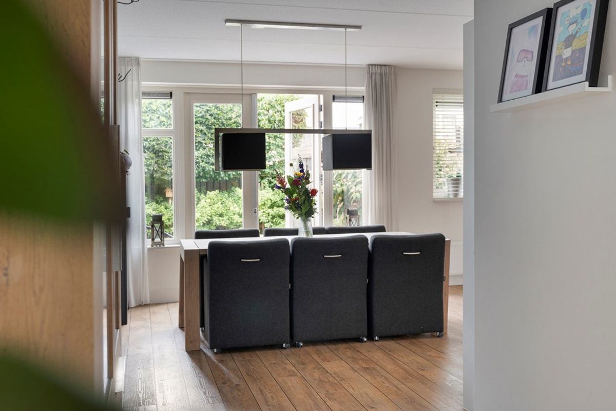 Een van de eerste dingen die je zal opvallen is de indrukwekkende uitstraling. Het huis is uitgebouwd, waardoor er binnen lekker veel leefruimte is. Door het hele huis vind je een strakke afwerking – alles is netjes en modern. Stap je binnen, dan voel je meteen de ruimte én het licht dankzij de grote raampartijen en slimme indeling. Geen zin in klussen? Hoeft ook niet – je kunt hier direct je spullen neerzetten!