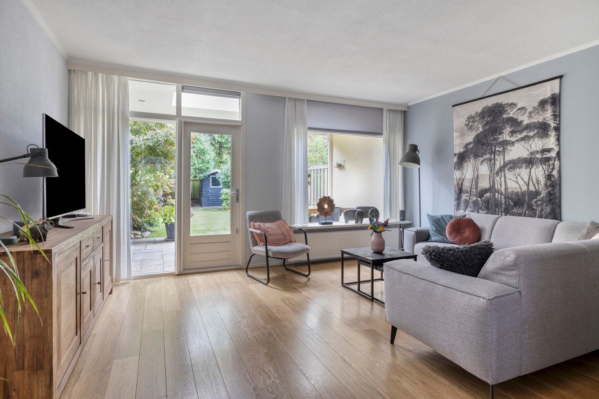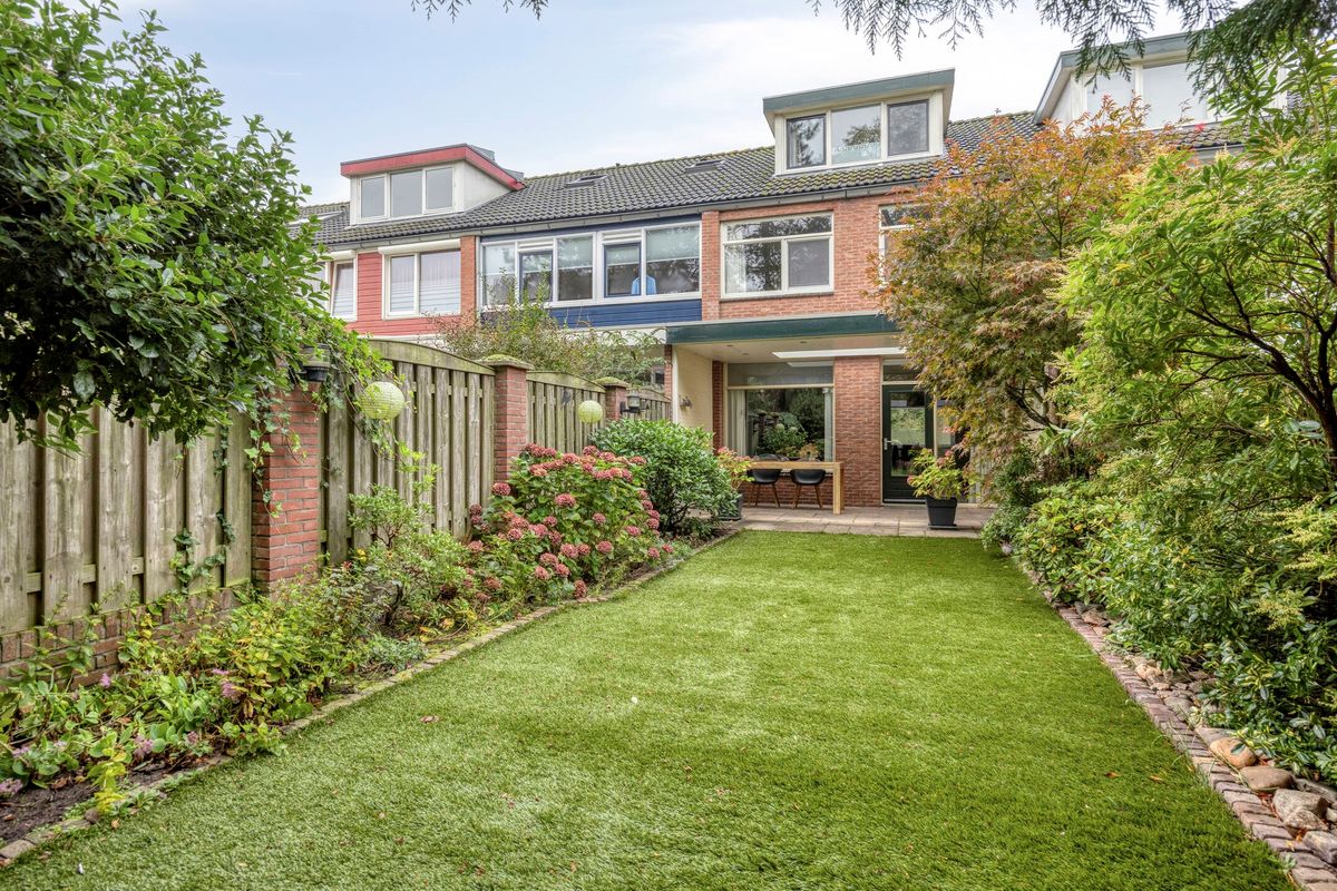 De achtertuin is verzorgd aangelegd en biedt volop ruimte om te genieten van het buitenleven. Aan het huis bevindt zich een overkapping, een fijne plek voor een loungeset of barbecuehoek. Via de achterpoort loop je direct richting een rustige vijver. Een mooi uitzicht en een natuurlijke overgang tussen tuin en omgeving.