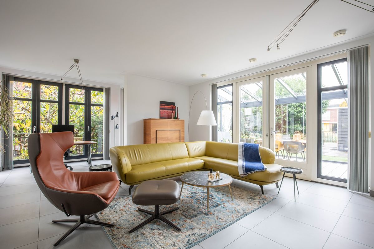 - Woonkamer met openslaande deuren naar de in glas uitgevoerde serre;