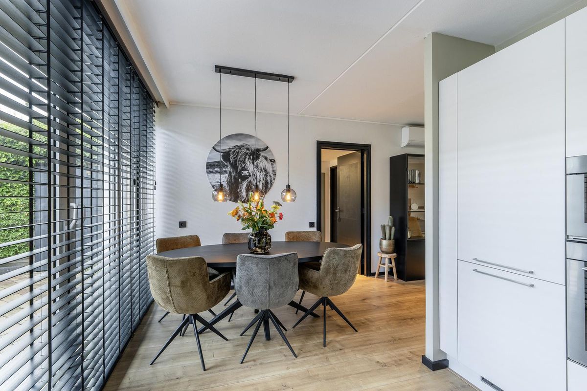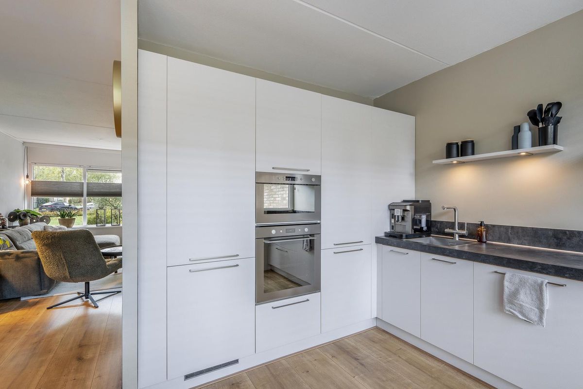 De zeer complete keuken beschikt over kwaliteitsapparatuur, waaronder een 5-groeps inductiekookplaat met afzuigkap (2025), spoelbak met kokend-water-kraan, vaatwasser, oven, magnetron en een koel-vriescombinatie. De achtertuin is te bereiken middels een aluminium schuifpui.
