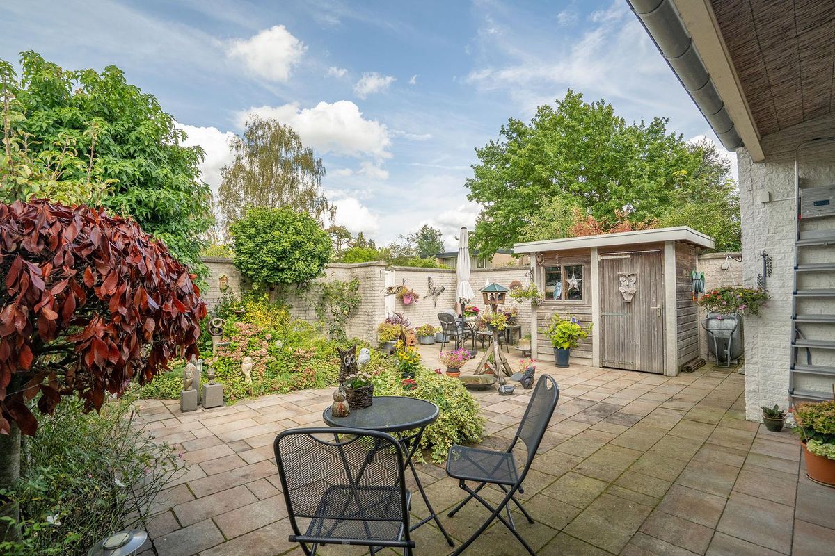 Tuin: In de besloten en ommuurde tuin op het noorden is er veel licht en voldoende zon, vanwege de hoogte van de woning. Vanuit alle aangrenzende ruimtes kan de tuin worden bereikt en is het goed toeven.