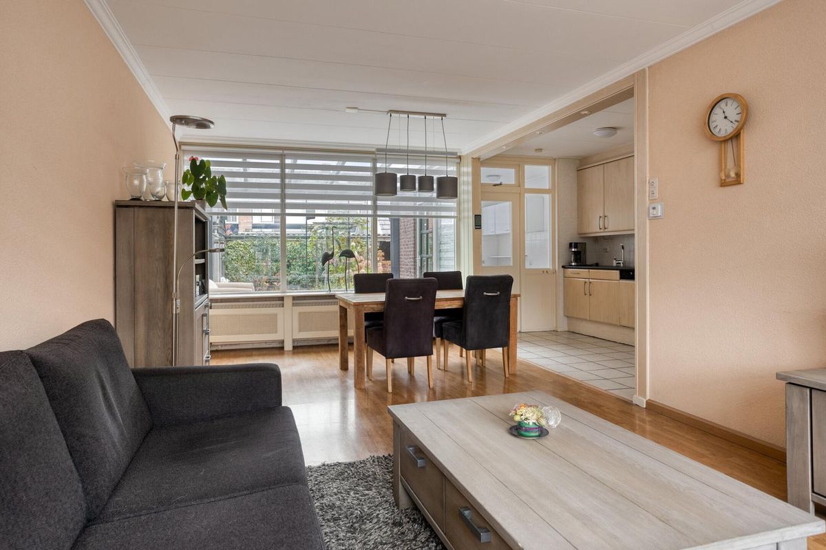 – U betreedt de woning via de hal en komt in de lichte doorzon-woonkamer terecht — dankzij de voor- en achterramen is het hier heerlijk licht.