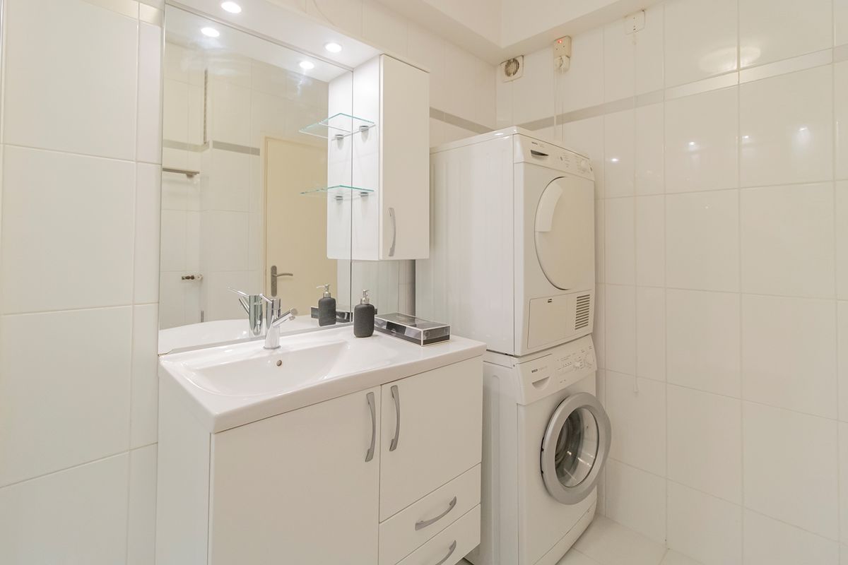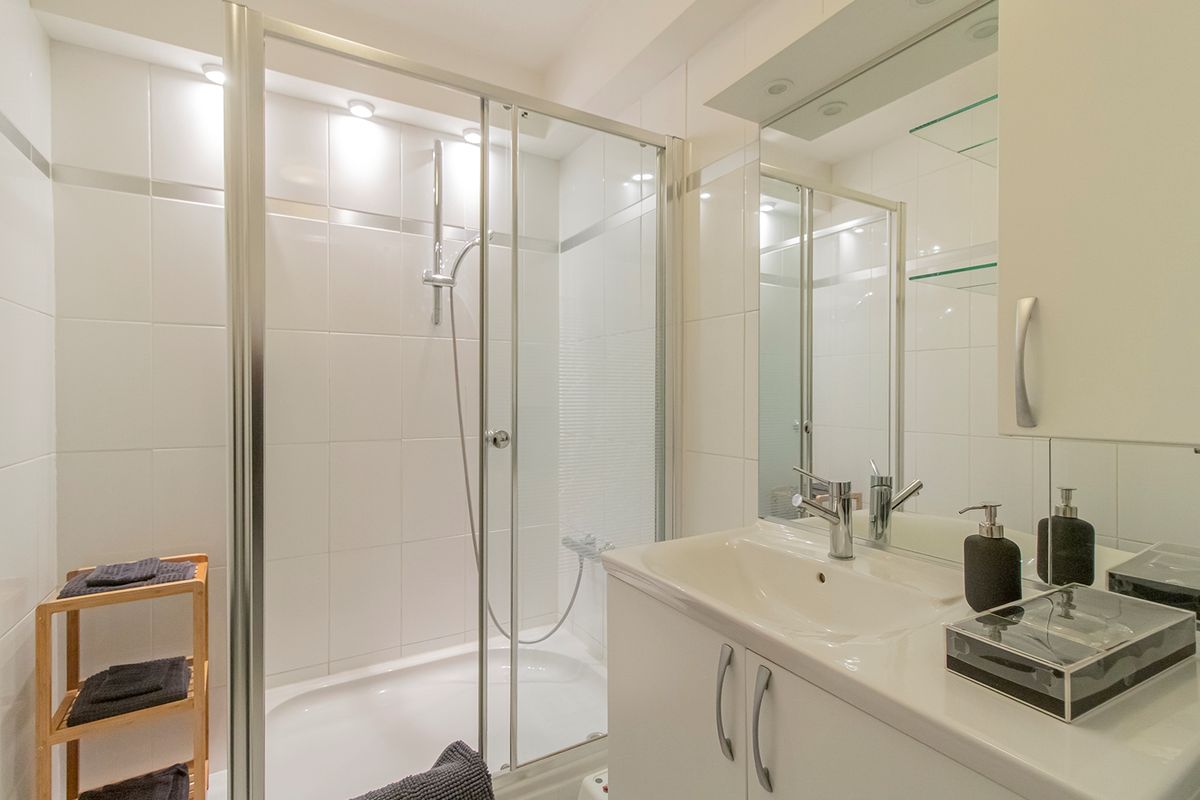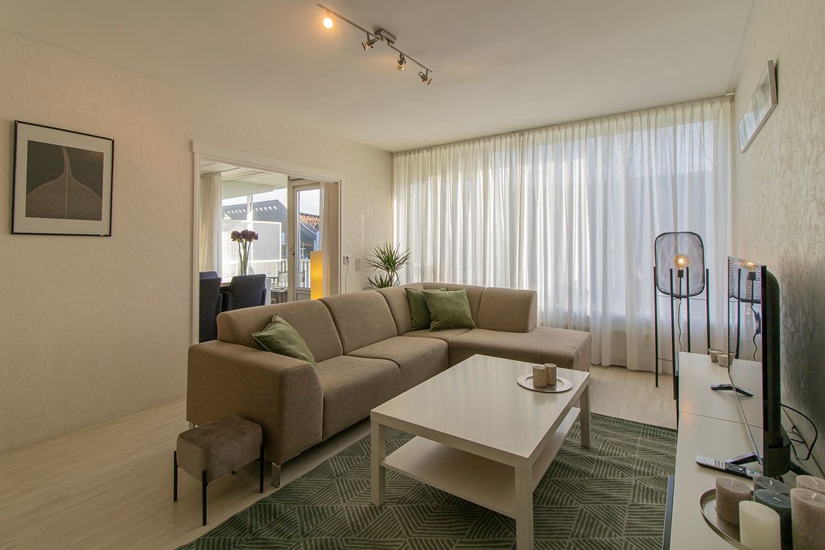 The kitchen is located at the front and is equipped with all conveniences, such as a fridge-freezer, dishwasher, combi-microwave, 4-burner gas hob and extractor. The bedrooms are located on the gallery side. The master bedroom has a double bed and a wardrobe. The second bedroom can be furnished as desired in consultation. The bathroom has a shower, sink, washing machine and dryer. The toilet is located separately in the hall.