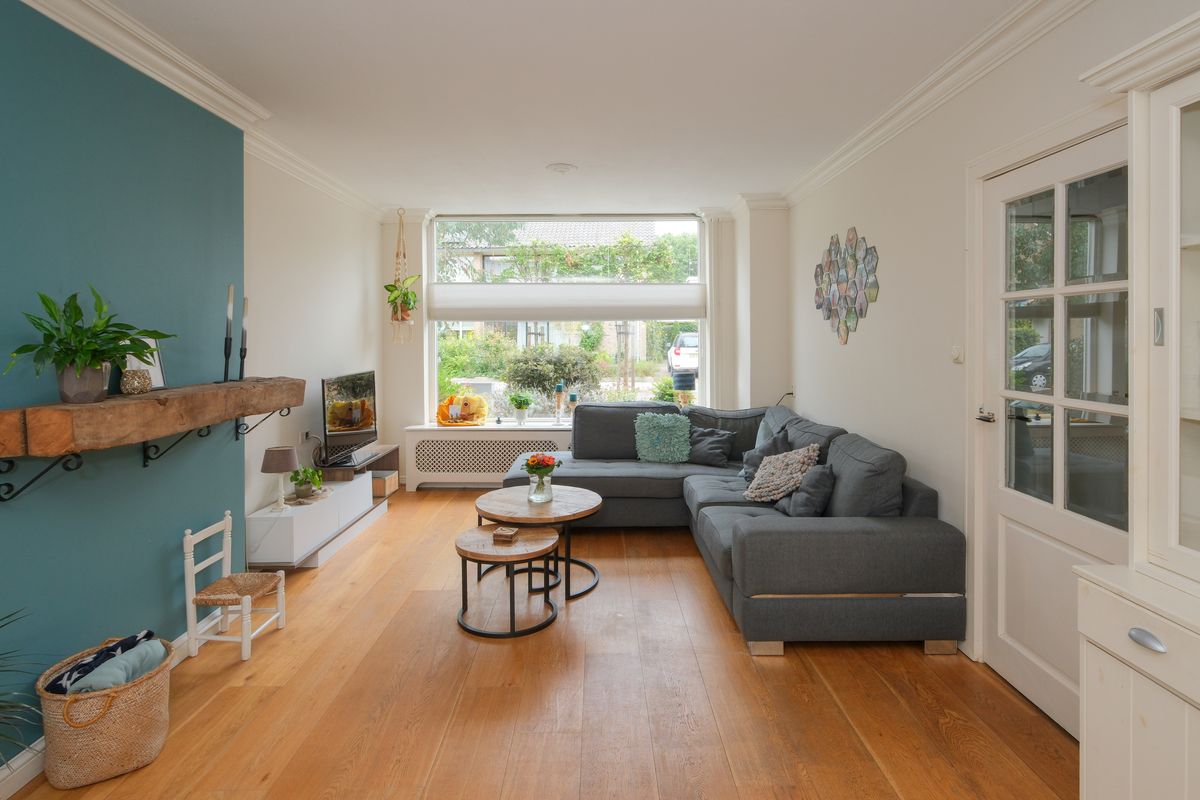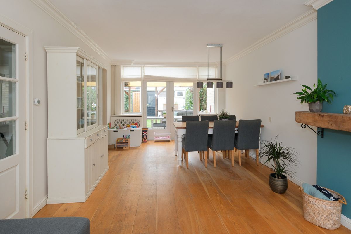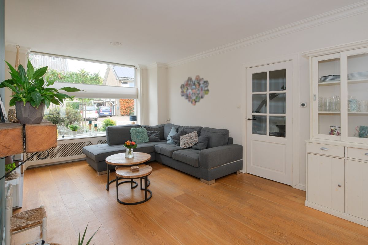 De woonkamer voelt ruim en licht dankzij de ramenpartijen aan voor- en achterzijde waarbij je op zonnige dagen zult genieten van de openslaande terrasdeuren.