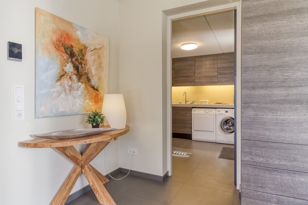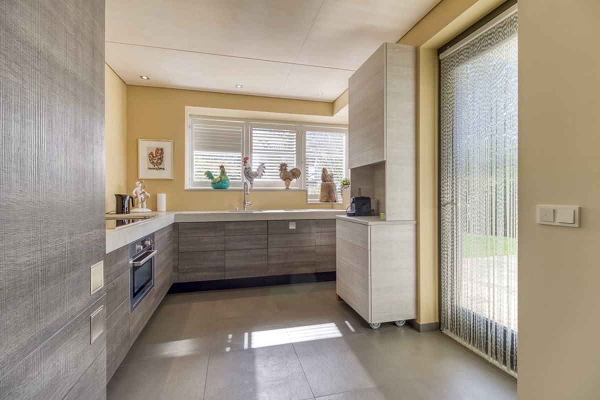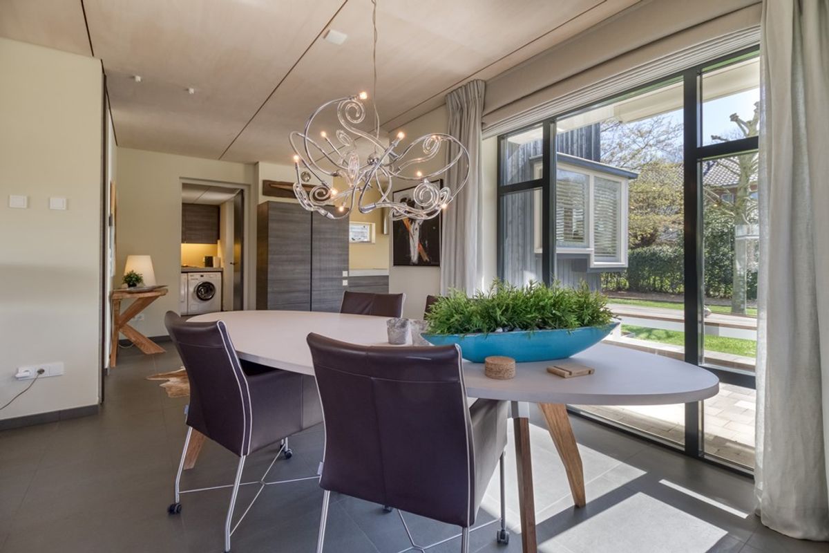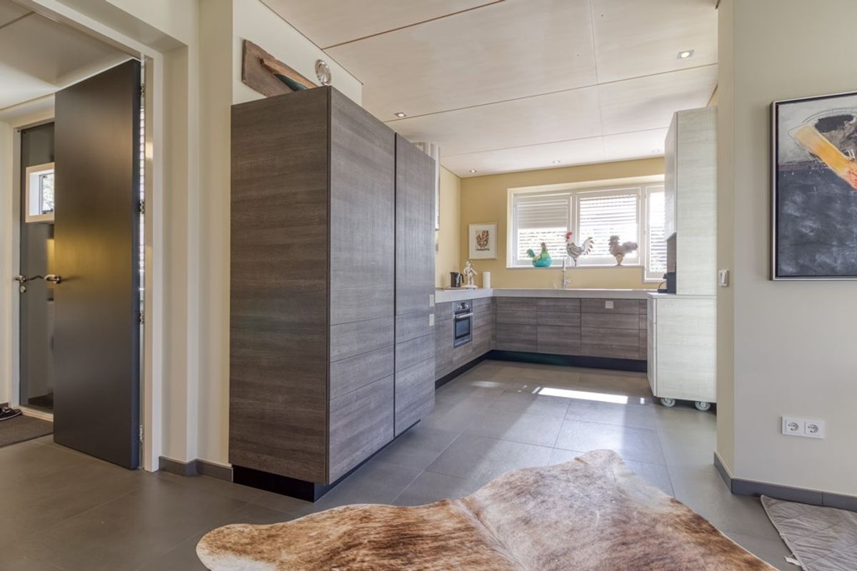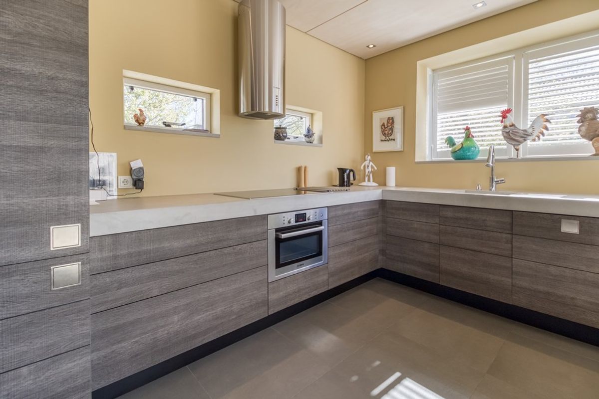 De moderne open keuken is voorzien van hoogwaardige inbouwapparatuur, waaronder een 4-pits inductiekookplaat, afzuigkap, vaatwamachine, oven, koelkast, vriezer en spoelbak. Vanuit de keuken heeft u direct toegang tot de achtertuin.