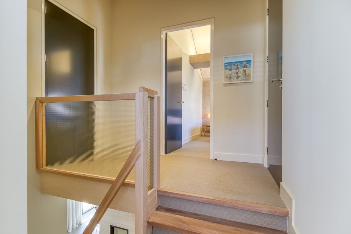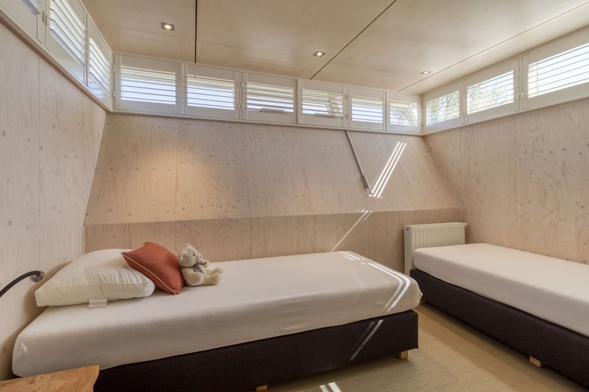 Een van de slaapkamers heeft een speelse kajuit-vorm en het hoge plafond in de slaapkamers zorgt voor een extra ruimtelijk gevoel.