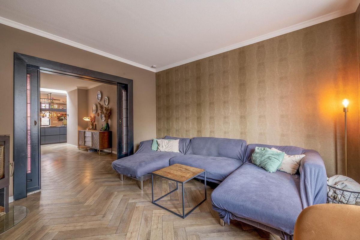 Zodra je binnenstapt, voel je het: dit is een huis met karakter. Originele details zoals glas-in-loodramen, paneeldeuren en een terrazzo vloer worden moeiteloos gecombineerd met een moderne leefkeuken en een uitgebouwde woonkamer. De royale living met sfeervolle gesloten houthaard vormt het kloppend hart van het huis — een plek waar warmte, gezelligheid en design samenkomen.