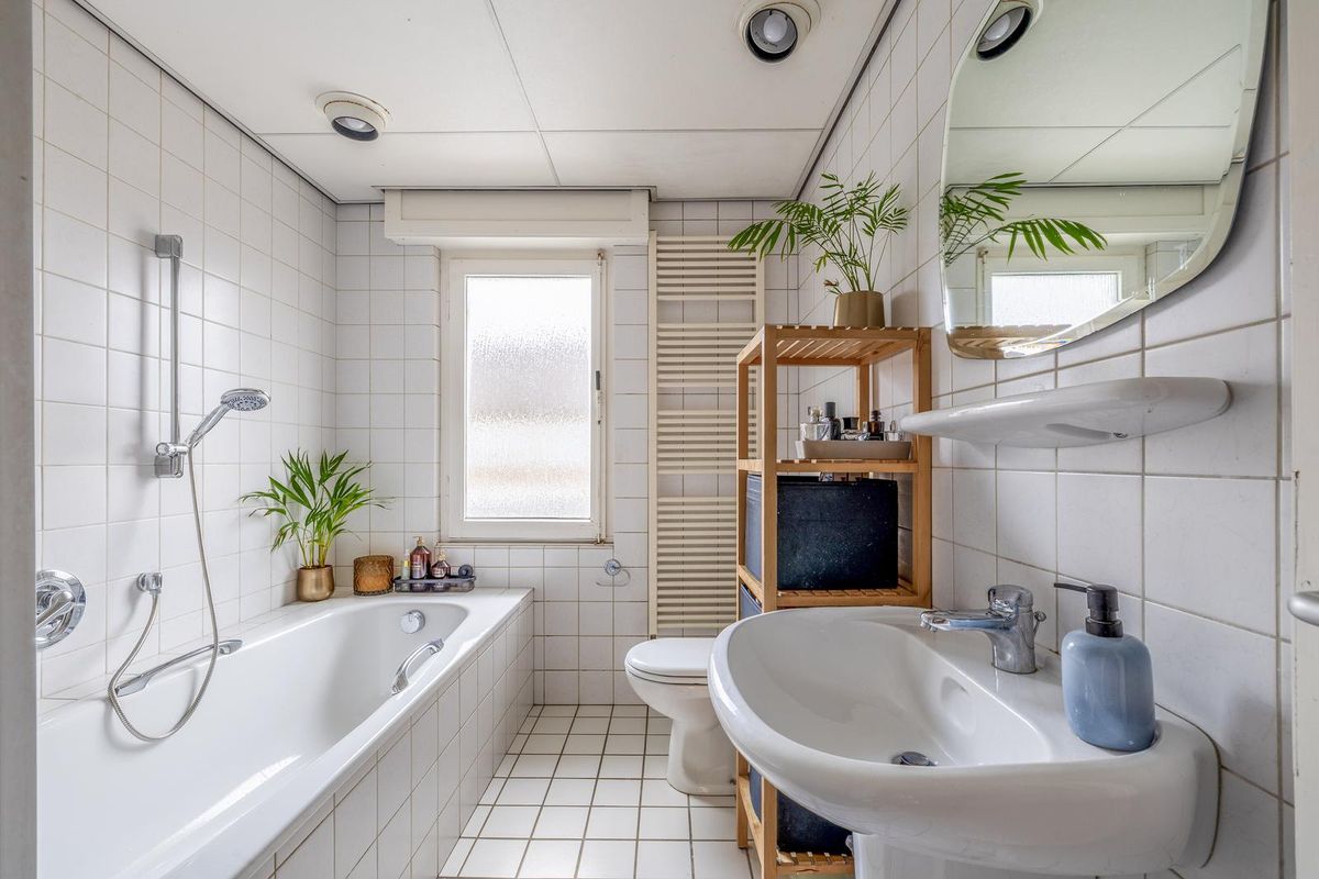 De volledig betegelde badkamer is uitgerust met een ligbad, inloopdouche, tweede toilet, wastafelmeubel en designradiator.
