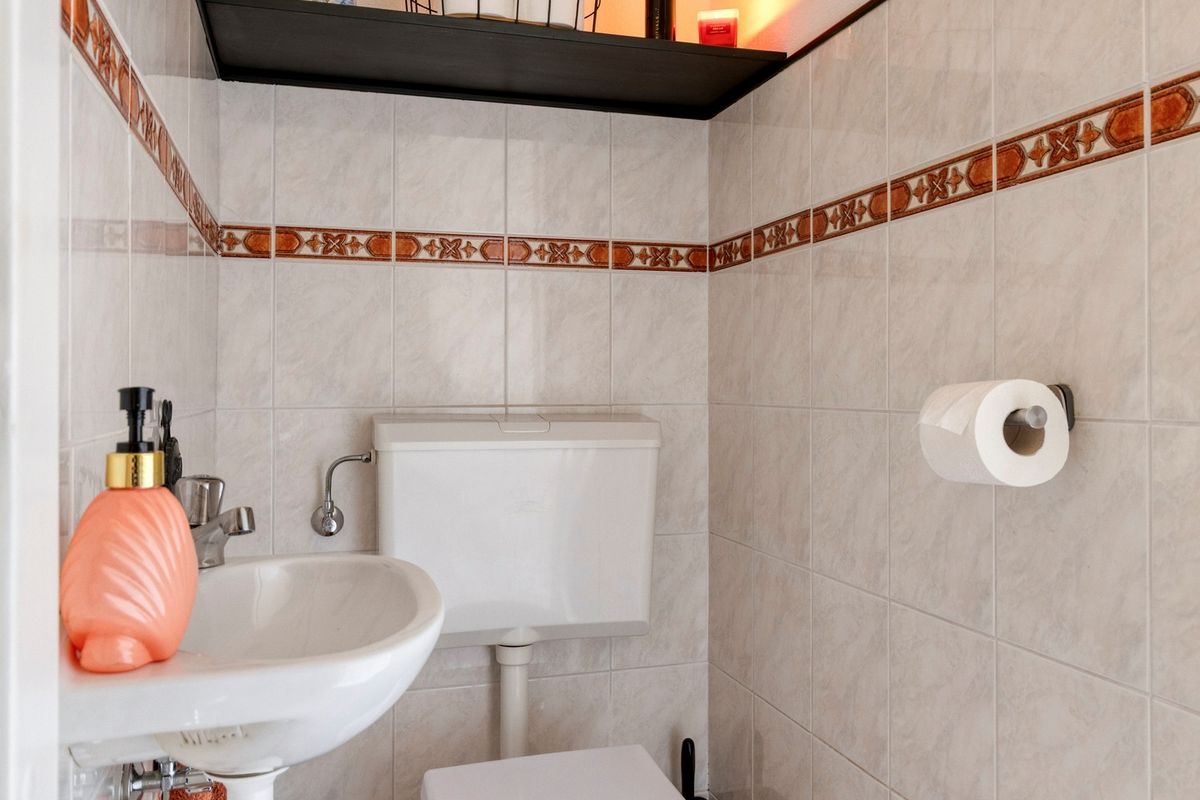 Begane grond: entree, hal, toilet met fonteintje, ruime woonkamer met loopdeur naar de zonnige achtertuin (Z/O), open keuken met diverse inbouwapparatuur.