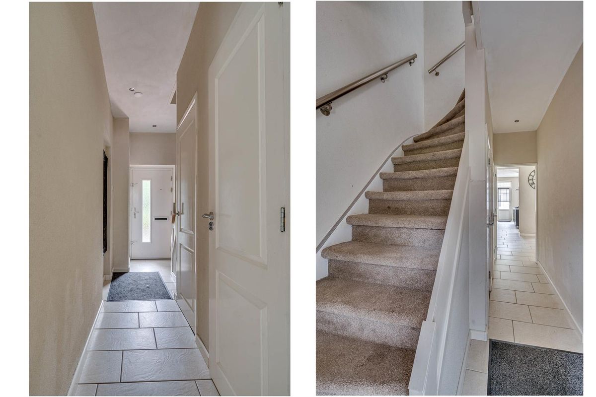 Via de entree van de woning is de hal te bereiken. De hal geeft toegang tot de meterkast, toiletruimte, woonkamer, trapopgang naar de verdieping en trapgang naar de kelder.