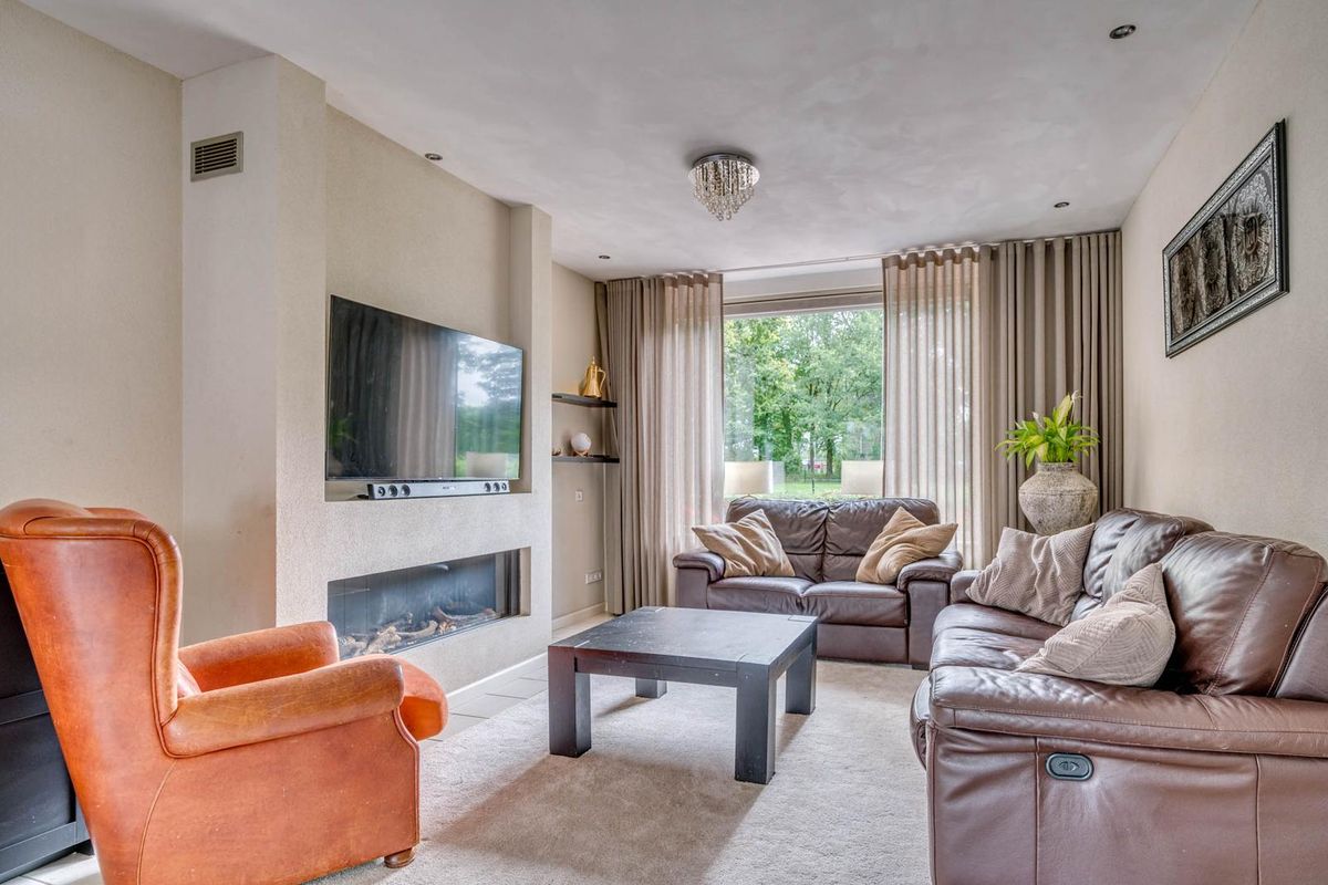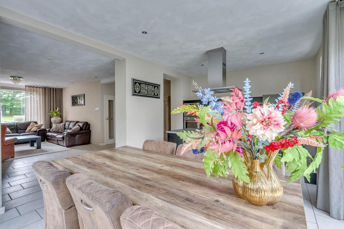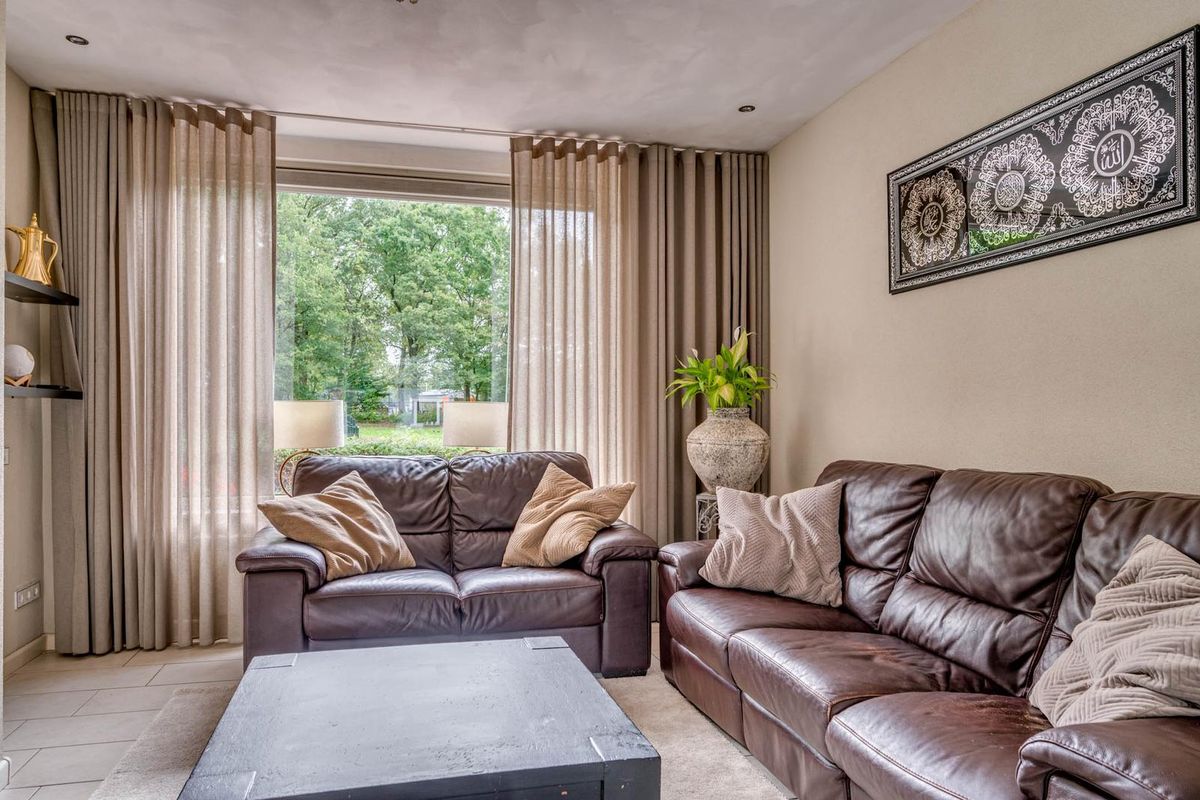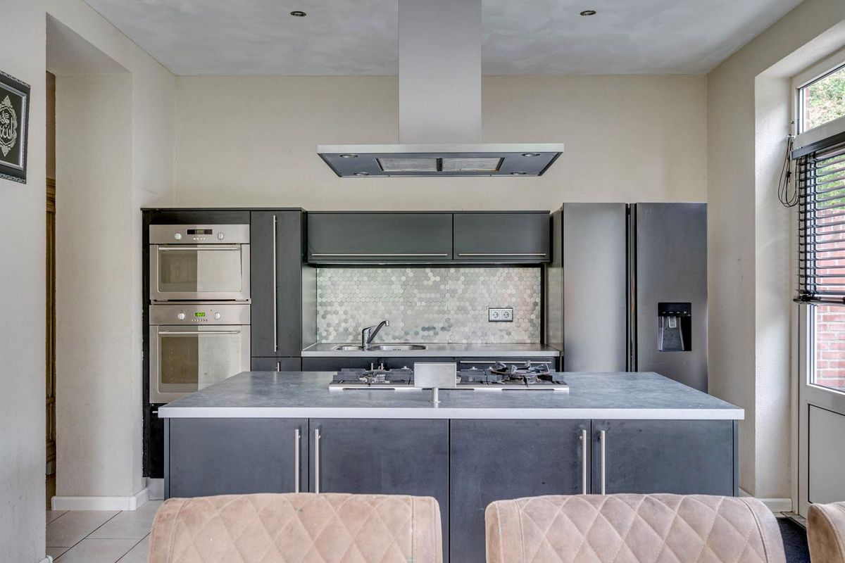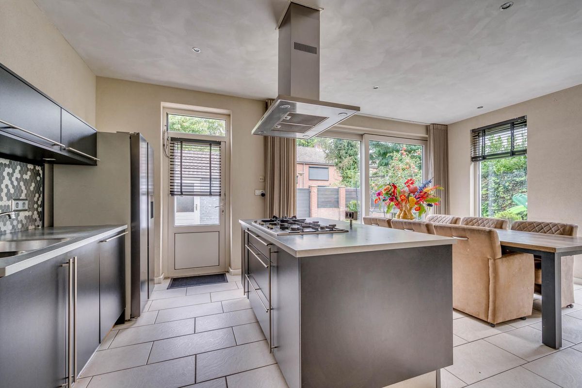 De geheel betegelde toiletruimte is voorzien van een zwevend toilet en fontein. Middels een loopdeur is de woonkamer te bereiken. De woonkamer geeft toegang tot het zitgedeelte en de eetkamer aan de achterzijde met open keuken en schuifpui naar de tuin. De grote raampartijen aan de voor en achterzijde van de woonkamer geeft veel natuurlijk lichtinval. De keuken welke in open verbinding staat met de woonkamer is o.a. voorzien van een kookeiland. De keuken beschikt over een 4-pits gasfornuis, afzuigkap, wokbrander, oven, magnetron, koelkast, diepvries en zeer veel opbergruimte. De woonkamer en zitkamer zijn geheel voorzien van inbouwspots. Verder is de gehele begane grond voorzien van een lichte tegelvloer met vloerverwarming.