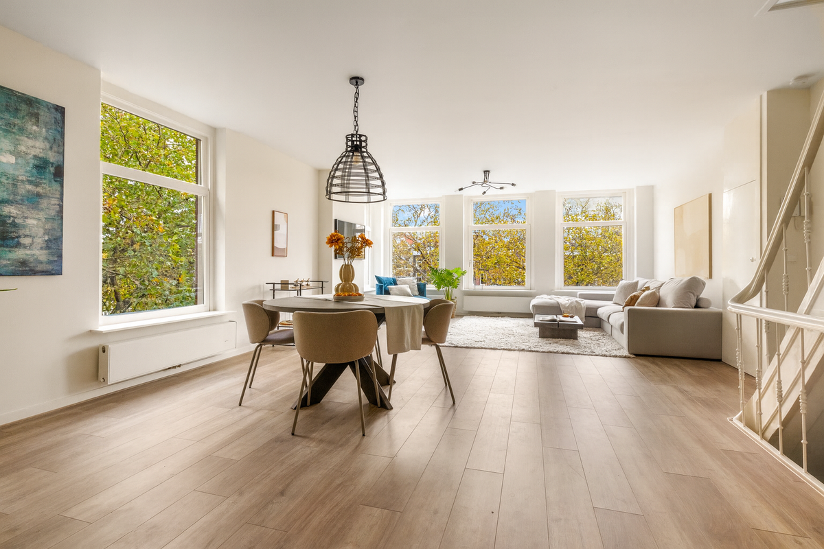 On the charming and tree-lined Nassaukade, this corner upper-house offers 136 m² of living space, superb light and a coveted canal-and-park view. Set across the top two floors on freehold land, the home features three well-sized bedrooms, a modern bathroom, a bright living area with windows on three sides, and a high-quality open-plan kitchen opening up to a southwest-facing balcony, all beautifully designed for a comfortable family life and entertaining.