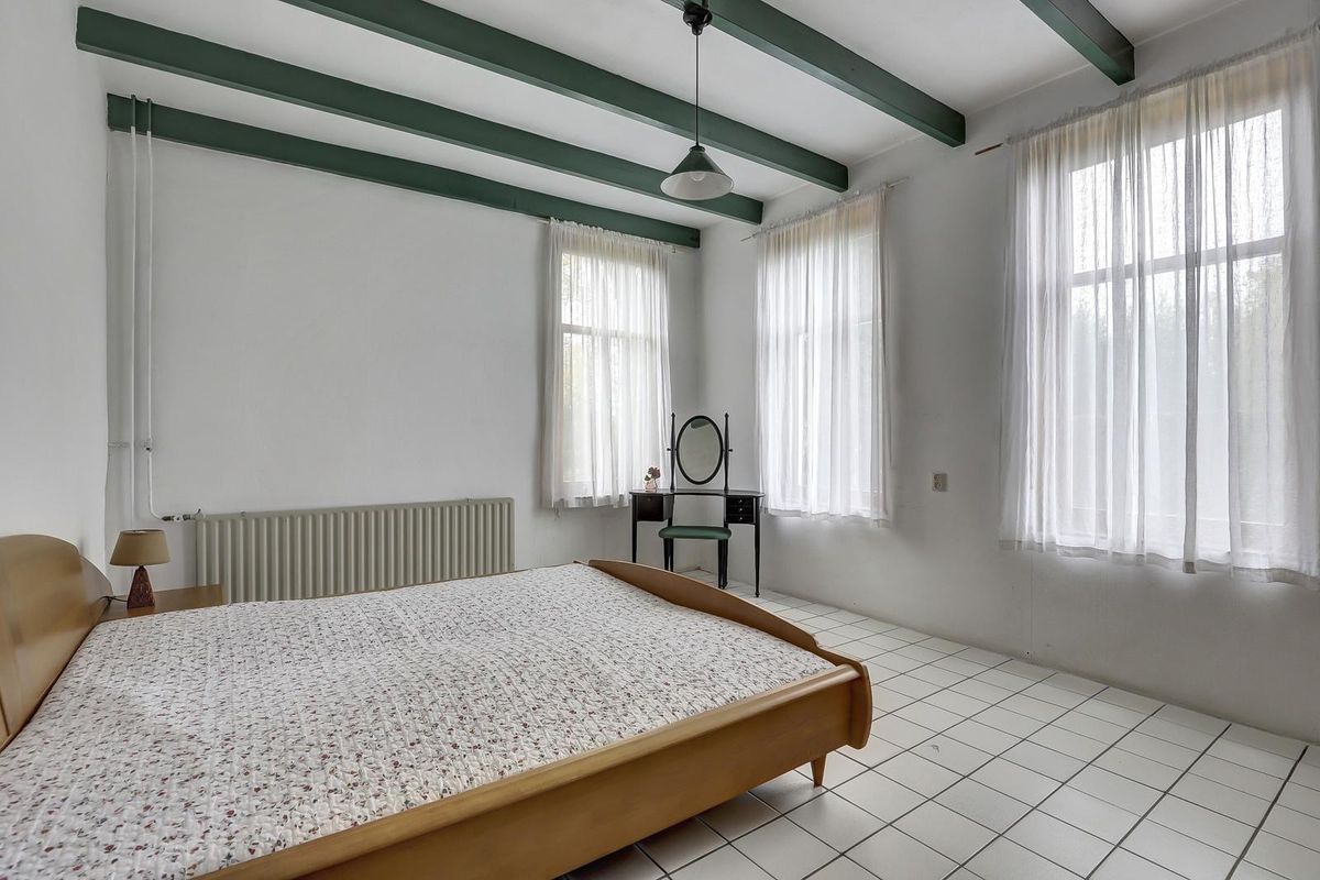 De buitenzijde is karakteristiek: een combinatie van een licht gemetselde gevel en een zwart gepotdekselde gevel en een grijze pannenkap met meerdere dakvensters. Binnen treft u robuuste materialen zoals plavuizenvloeren, witgeschilderde balkenplafonds en een gemetselde open haard. Een heerlijke basis om naar eigen smaak te moderniseren!