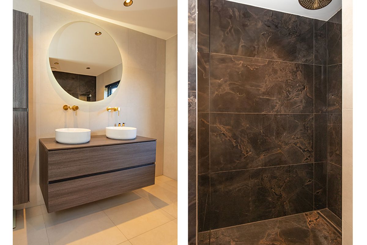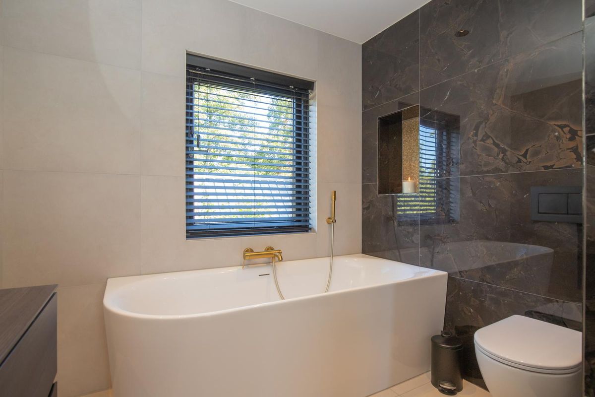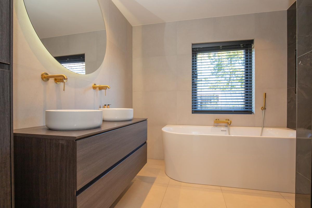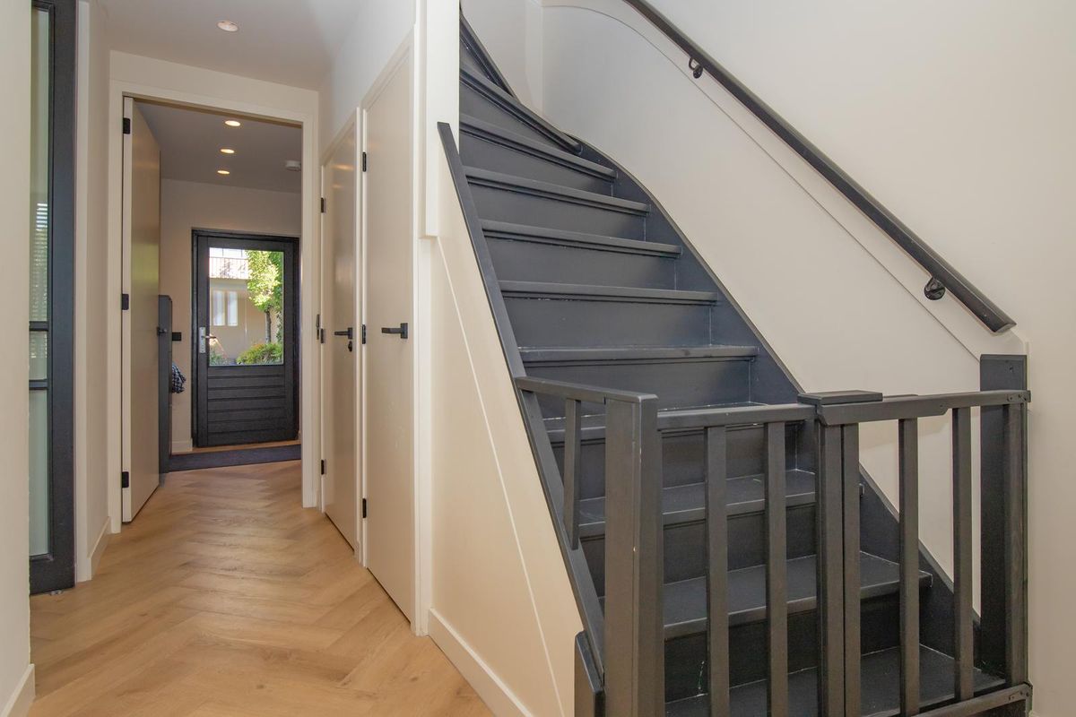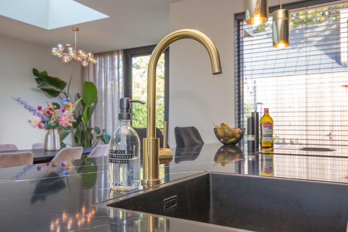 Bij binnenkomst valt direct de hoogwaardige afwerking op. De hal met modern toilet en trapkast leidt naar de gezellige woonkamer, voorzien van vloerverwarming en een luxe visgraat PVC-vloer. De grote erker aan de voorzijde zorgt voor veel lichtinval, terwijl de sfeervolle doorkijk-gashaard een natuurlijke verbinding vormt met de royale eetkamer (maar liefst 24m²!), inclusief maatwerkkasten en een prachtige lichtstraat. De open woonkeuken aan de achterzijde is een ware eyecatcher. Met een stijlvol kook- en spoeleiland, hoogwaardige inbouwapparatuur waaronder: koffiemachine, inductiekookplaat met geïntegreerde afzuiging, een apparatenwand en openslaande deuren naar de tuin is dit dé plek voor gezellige diners en ontspannen kookmomenten.
