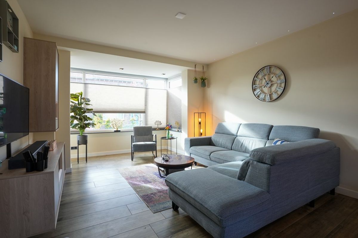 De woonkamer met erker heeft een oppervlakte van circa 31.8 m2, met het zitgedeelte aan de voorzijde en het eetgedeelte aan de achterzijde. Qua vloer-, wand- en plafondafwerking is de woonkamer direct klaar om te gaan inrichten.