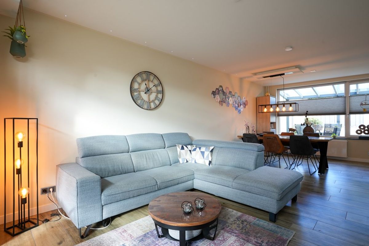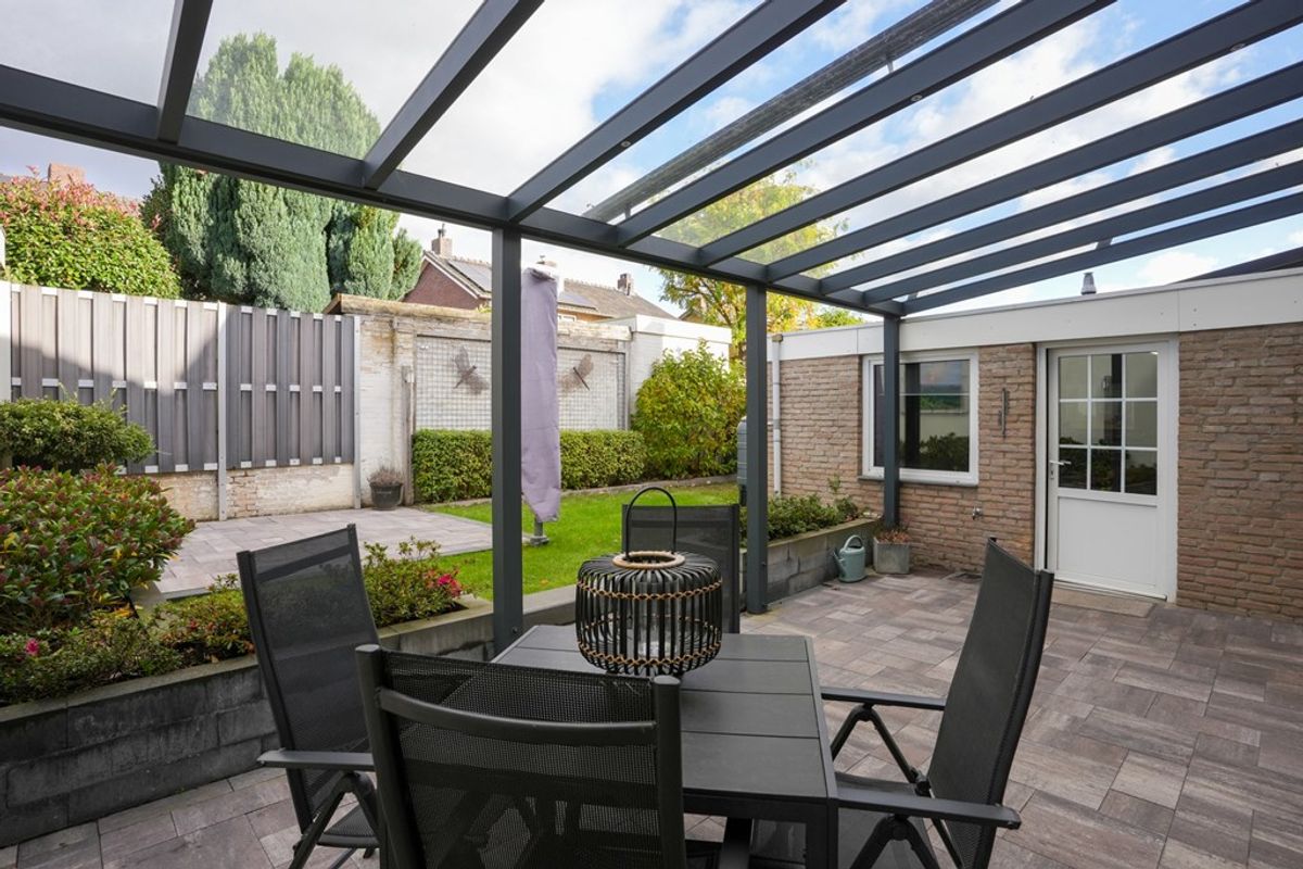 Vanuit de keuken is de fraai aangelegde tuin te bereiken. Blikvanger is het overdekte terras (2022) van maar liefst 23 m2 met een elektrisch bedienbaar zonnescherm, inbouwverlichting en terrasverwarming. De rest van de tuin is ingedeeld met gras, beplanting en een tweede terras. In het verlengde van de garage staat een stalen berging, die wordt gebruikt voor het tuingereedschap. De voortuin is ingedeeld over twee niveaus, met beplanting die weinig onderhoud nodig heeft.