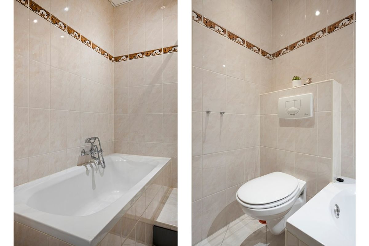 Het appartement beschikt over twee goed bemeten slaapkamers, en de badkamer is uitgerust met een ligbad, separate douche cabine, wastafel met meubel en toilet. Daarnaast is er een praktische berging in de hal, met de wasmachine aansluiting.