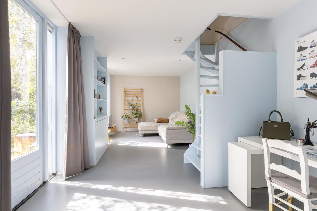 Je komt binnen in de lichte woonkamer met hoge plafonds en grote ramen. De ruimte loopt door naar een gezellige eethoek en moderne keuken, voorzien van inbouwapparatuur en zicht op de tuin. Haaks op de keuken bevindt zich de tweede woonkamer, die perfect kan dienen als werkplek, speelhoek of tv-kamer. Keuken en tweede woonkamer hebben vloerverwarming. Verder beschikt de begane grond over een slaapkamer met eigen sanitair, een halletje met achterdeur, een apart toilet en een handige bergkast.