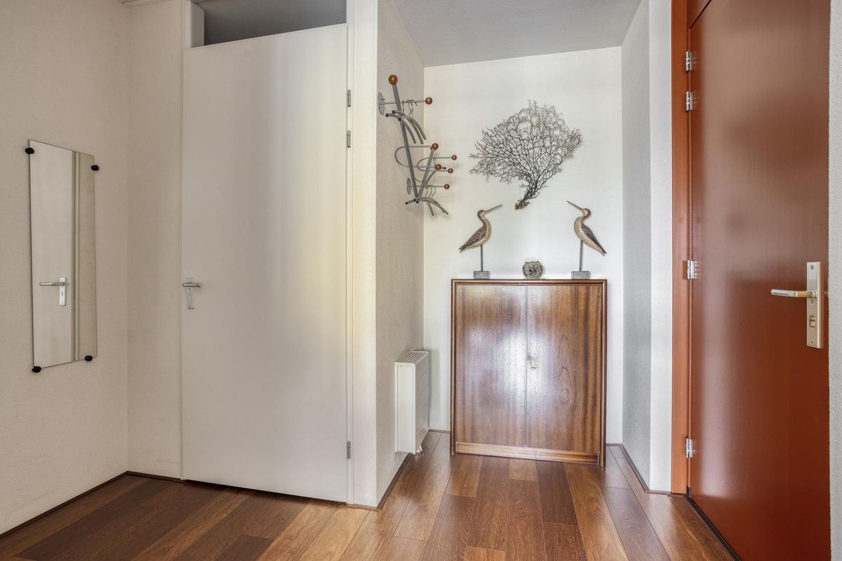 Bij binnenkomst via de ruime hal valt de praktische indeling direct op. Hier vindt u het toilet met fonteintje en een bergkast met technische voorzieningen, zoals cv-combiketel, mechanische ventilatie unit en wasmachineaansluiting.