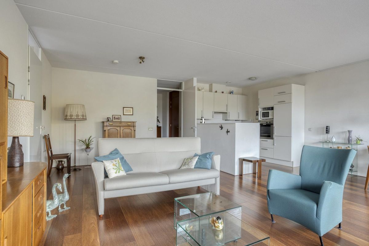 De lichte woonkamer is voorzien van een laminaatvloer en spachtelputz muren en staat in open verbinding met de keuken, hetgeen een prettige leefruimte creëert. Via openslaande deuren is het zonnige balkon op het westen bereikbaar, waar u kunt genieten van de frisse buitenlucht.