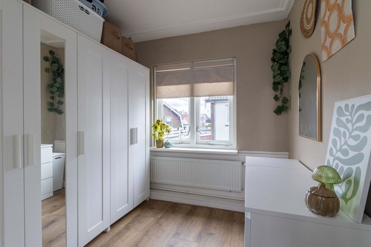 Via de trap bereik je de overloop, die toegang biedt tot alle vertrekken op deze verdieping. Hier bevinden zich drie slaapkamers, stuk voor stuk prettig van formaat en praktisch ingedeeld. Dankzij de rechte wanden zijn de kamers goed in te richten als slaap-, werk- of hobbykamer.