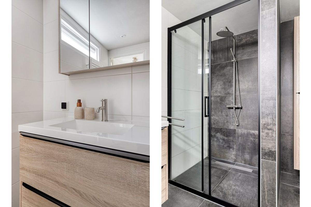 De badkamer is een pareltje! Met een ruime inloopdouche, een breed wastafelmeubel en een handige plek voor de wasmachine, is deze ruimte een luxe toevoeging aan je woning. De begane grond is bovendien volledig voorzien van nieuwe pvc-vloeren met vloerverwarming, wat zorgt voor extra comfort in het hele huis.