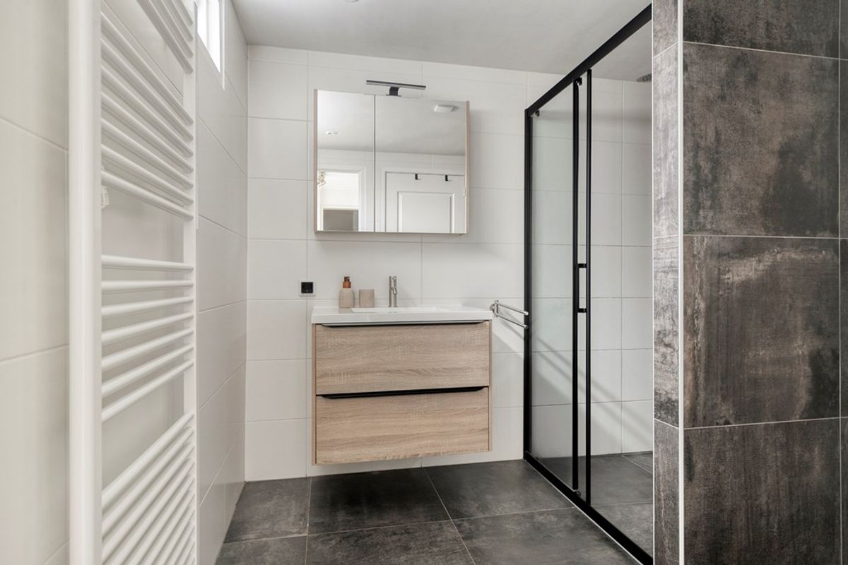 Op de eerste verdieping vind je drie slaapkamers van verschillende formaten. De ruime hoofdslaapkamer aan de voorzijde van de woning is uitgerust met nieuwe rolluiken, terwijl een van de slaapkamers aan de achterzijde beschikt over airco (2022), ideaal voor de warme zomers. Alle slaapkamers zijn voorzien van nieuwe pvc-vloeren, waardoor alles netjes en strak oogt. Op de overloop is een vlizotrap die toegang biedt tot een geïsoleerde bergzolder, perfect voor het opbergen van spullen die je niet dagelijks nodig hebt.