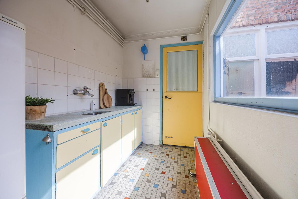 Vanuit het 2e winkeldeel komt u in de keuken op de begane grond. Deze keuken is eenvoudig van opzet. De keuken biedt via een halletje toegang tot het toilet en de achtertuin.