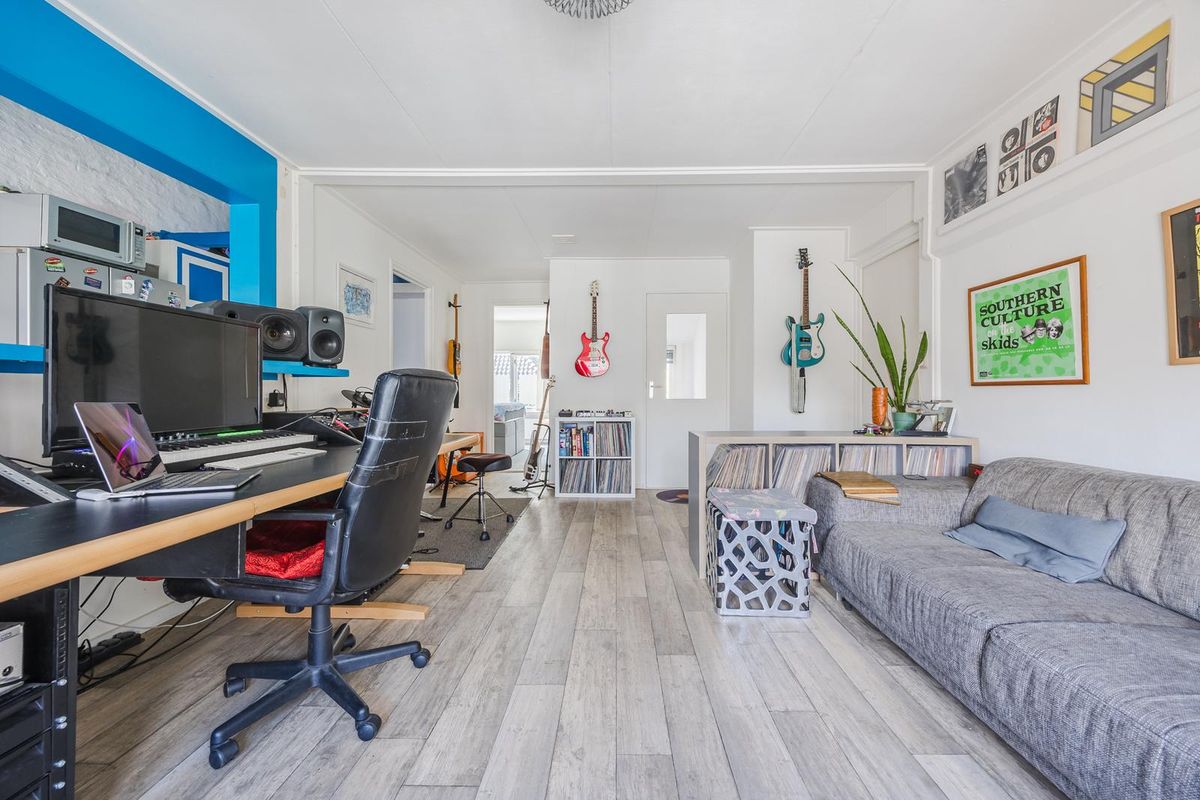 De woonkamer is voorzien van een vinylvloer en biedt toegang tot de keuken en één van de drie slaapkamers.