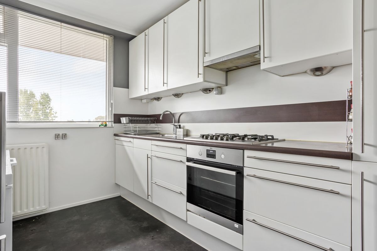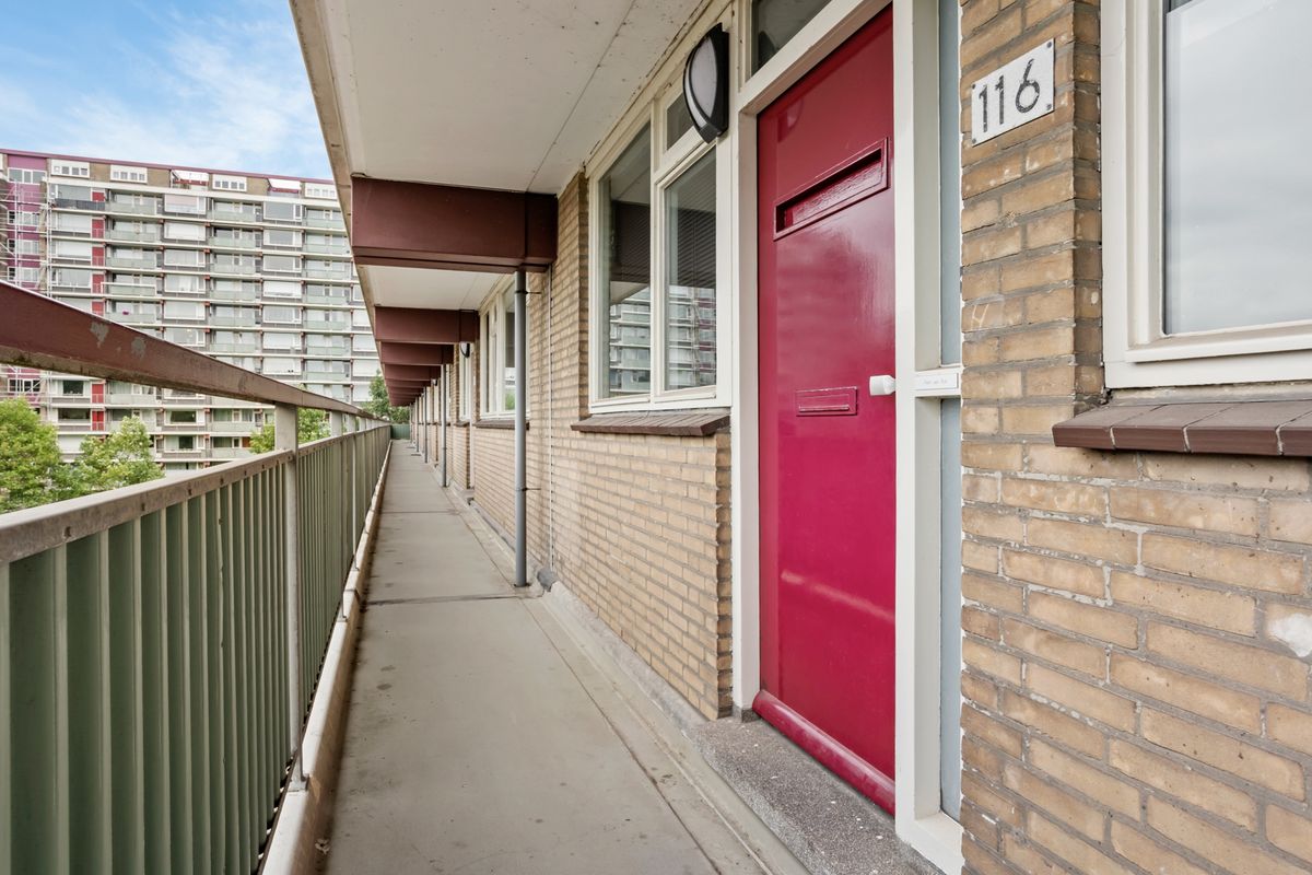 Entree via gesloten ingang met bellentableau en brievenbussen. Liften en trap naar de galerij van de 4e verdieping. Via het tochtportaal toegang tot de hal die toegang biedt aan alle ruimtes. Aan de voorzijde bevinden zich de keuken en 2 slaapkamers, De keuken is voorzien van diverse inbouwapparatuur en door de slimme indeling is er ook ruimte voor de wasmachine en droger. Aan de achterzijde bevinden zich de woonkamer met zijkamer, die makkelijk om te bouwen is naar een 4e slaapkamer, en de masterbedroom. Het balkon bevindt zich op het zonnige zuiden en is omgeven door groen. De moderne badkamer en toilet zijn, net als de keuken, in zeer nette staat. ook is de woning voorzien van een ruime bergkast waar zich ook de boiler (huur) bevindt.