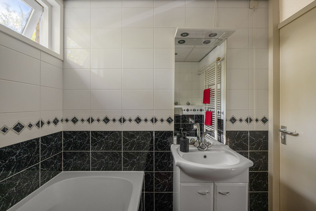 Op de eerste verdieping zijn drie slaapkamers van goed formaat, waarvan twee aan de achterzijde. Een van deze kamers is de ouderslaapkamer van circa 12 m2, met genoeg plek voor een tweepersoonsbed en een garderobekast. De tweede en derde slaapkamer zijn te gebruiken als slaapkamer, werkkamer, of kleedruimte. De badkamer is ingedeeld met een ligbad, tweede toilet, handdoekenradiator en een wastafelmeubel.