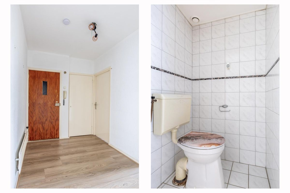 Entree/hal met de meterkast en het toilet. Vanuit de hal is er toegang tot de meeste vertrekken. Allereerst nemen wij u mee naar de royale living.