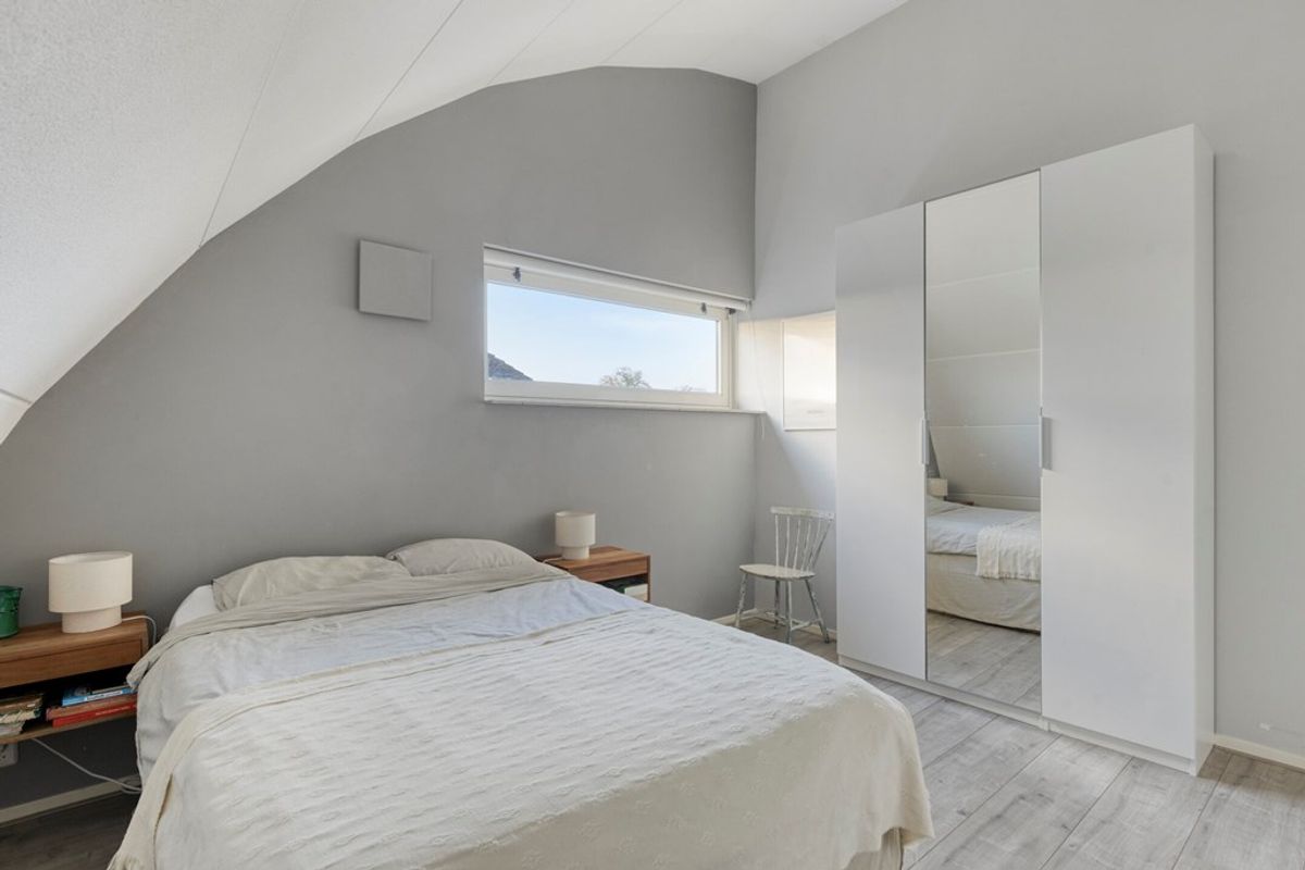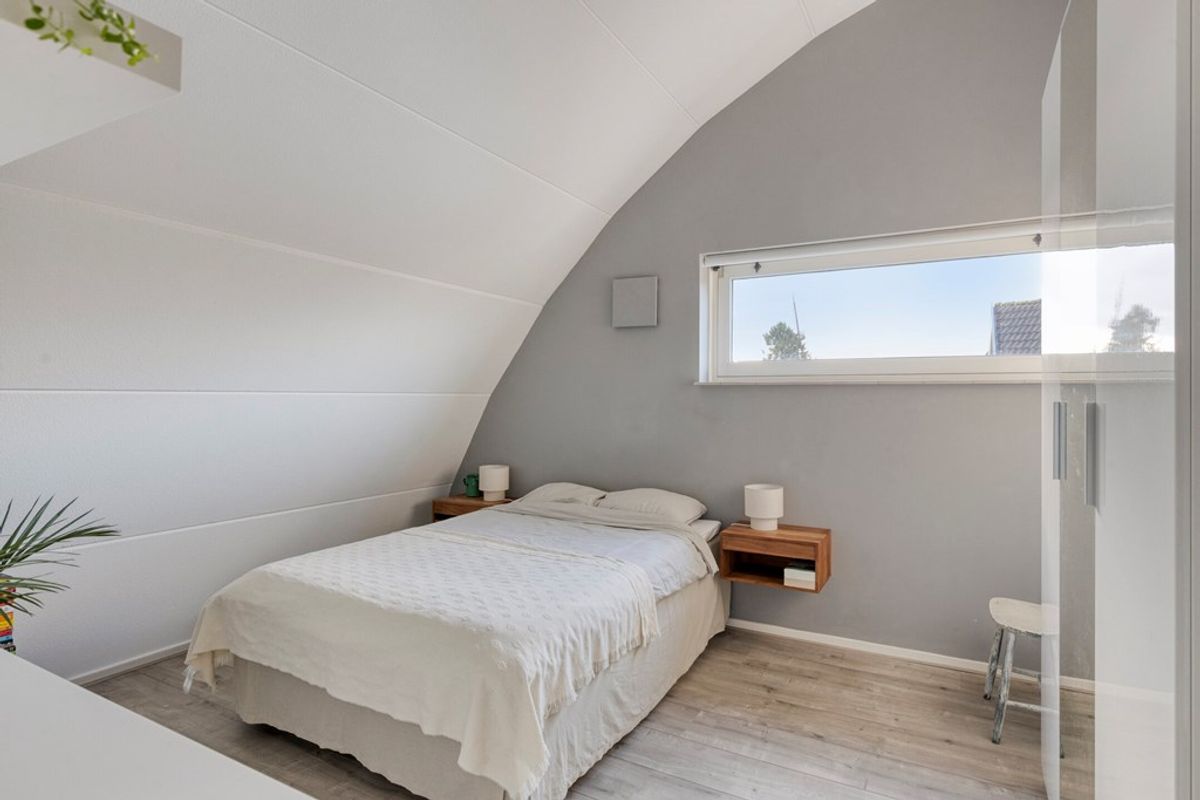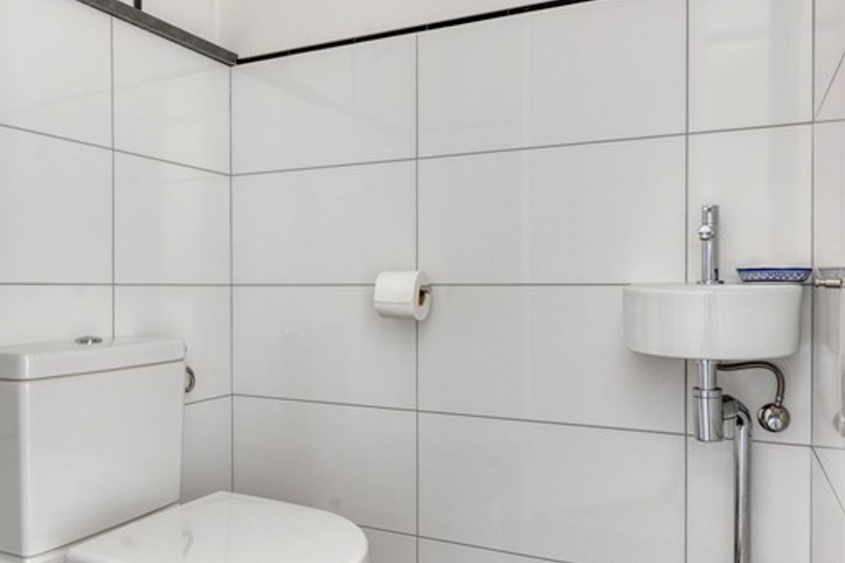 De hoofdslaapkamer biedt volop ruimte voor een tweepersoonsbed en kledingkast. De tweede kamer is nu ingericht als thuiskantoor, met een breed werkblad onder de ramen; een heerlijke plek voor wie regelmatig thuiswerkt of een rustige hobbyruimte zoekt. De badkamer is modern afgewerkt met lichte wandtegels, donkere vloertegels, een ruime douche, wastafelmeubel en aansluiting voor wasapparatuur – praktisch en stijlvol tegelijk.