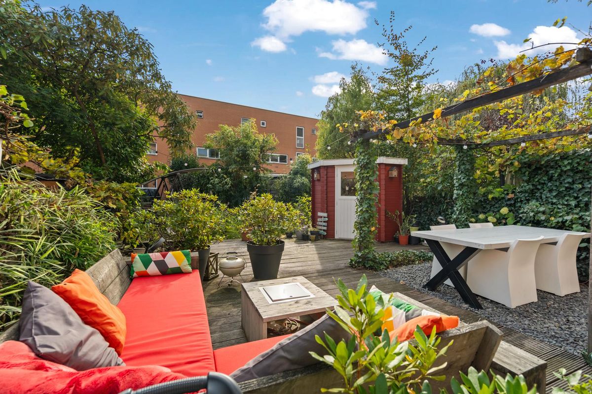 De tuin is op zomerse dagen jouw tweede woonkamer. De plek om buiten te eten, te spelen en te genieten. Gelegen op het zuiden vind je hier altijd wel een plekje in de zon. De tuin is door middel van beplating ingedeeld in meerdere knusse hoekjes. Een knusse loungehoek, sfeervolle eethoek onder de pergola en een zitje aan het water waar je ’s avonds in de laatste avondzon gezellig een wijntje drinkt. De tuin is voorzien van sfeervolle tuinverlichting en een praktische berging biedt ruimte voor het opbergen van bijvoorbeeld de tuinkussens en het tuingereedschap. Voor het opbergen van de fietsen vindt je een berging naast de parkeerplaats.