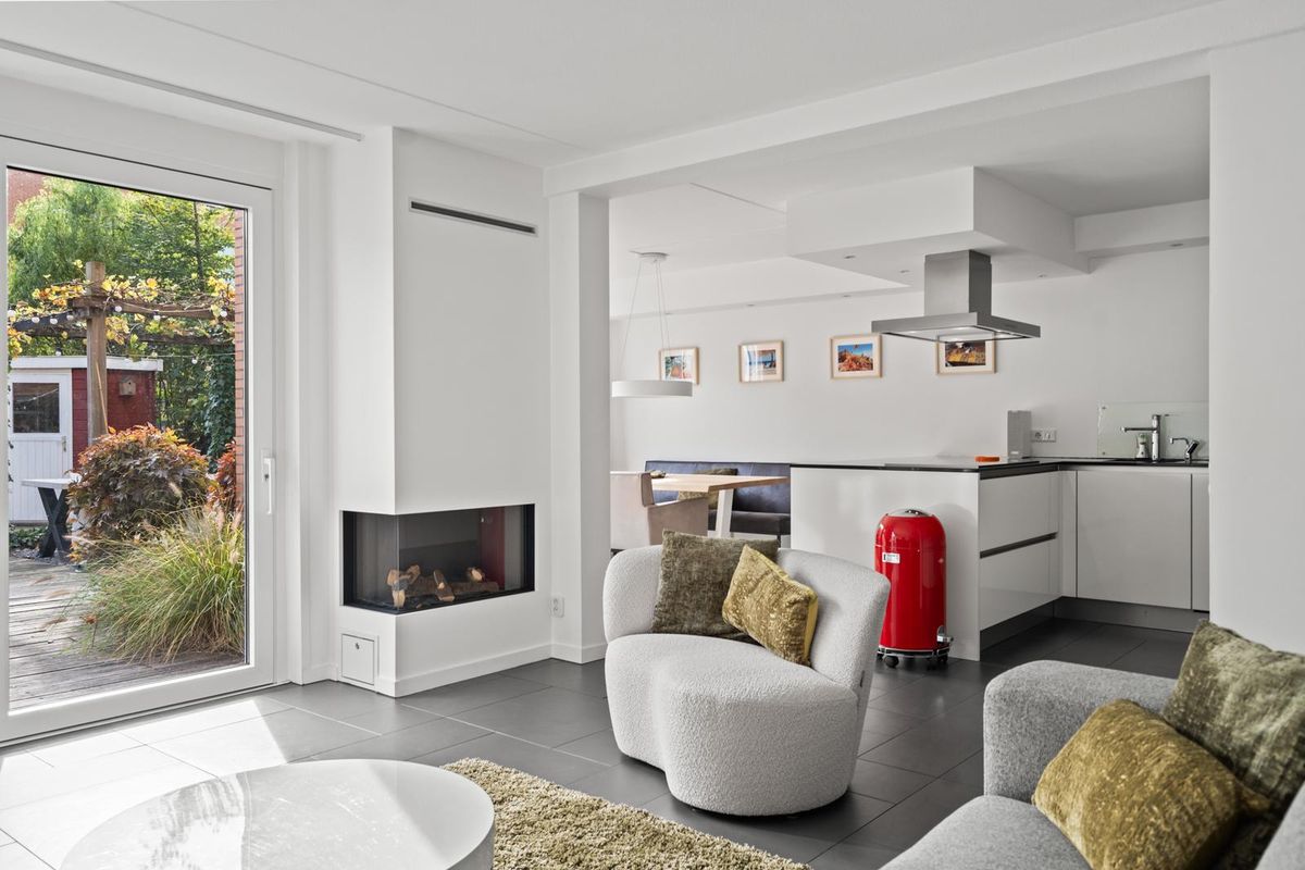 Uitgebreid koken, samen uren tafelen of na een drukke dag ontspannen op de bank. Daarvoor vind je op de begane grond een sfeervolle living en moderne woonkeuken. Wat direct opvalt, wanneer je binnenstapt in de living is de grote schuifpui in de woonkamer. De pui is door de huidige bewoner gerealiseerd, zorgt voor volop daglicht en een directe verbinding met de tuin. Vloerverwarming zorgt het hele jaar door voor een comfortabele temperatuur en voor een beetje extra gezelligheid vind je hier een open (gas)haard.