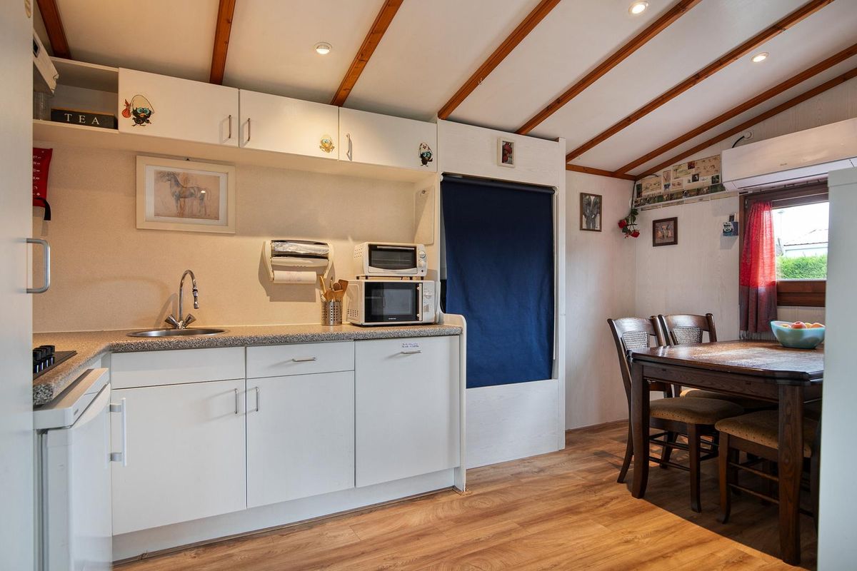 Met een woonoppervlakte van 45 m², een aangebouwde veranda, 5 zonnepanelen (420 WP) en lage parklasten van slechts € 825,- per jaar, geniet je hier zorgeloos van het buitenleven. Het netto verhuurrendement van ca. € 15.000,- per jaar maakt dit aanbod extra aantrekkelijk. De ligging nabij de haven en het water – op loopafstand – maakt het vakantiegevoel compleet.