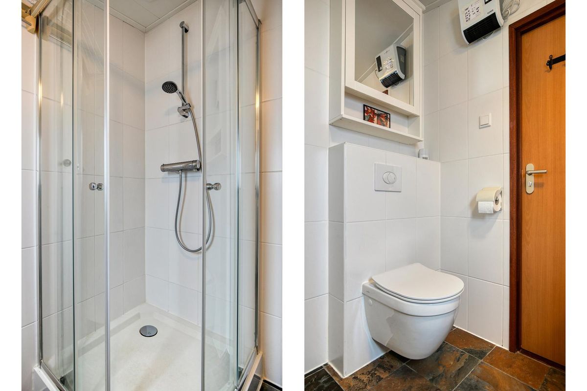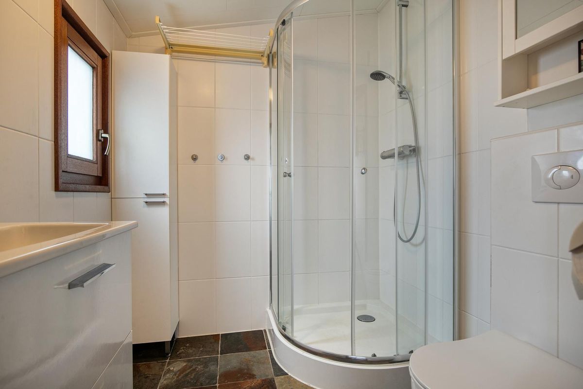 Buiten vind je een ruime berging met sauna en wasmachine, ideaal voor ontspanning en praktisch gebruik.