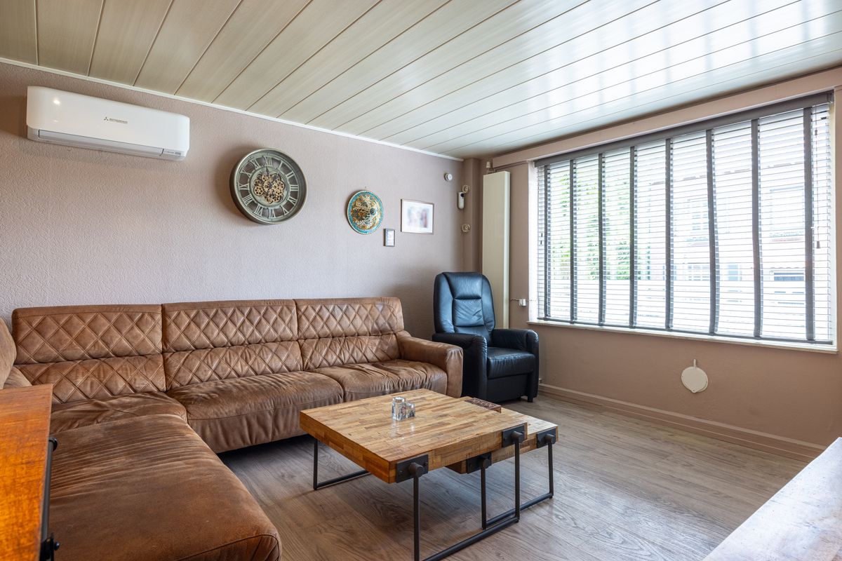 Je komt binnen in een verzorgde ontvangsthal met een tegelvloer, garderobe, meterkast en toegang tot de woonkamer. De woonkamer is sfeervol en licht dankzij het grote raam aan de voorzijde, dat voorzien is van een elektrisch rolluik. Een airco-installatie uit 2025 zorgt het hele jaar door voor een aangename temperatuur – zowel verwarmen als koelen is mogelijk. De ruimte is afgewerkt met een pvc-vloer. De keuken is in 2024 vernieuwd en heeft een onderhoudsvriendelijke grindvloer.