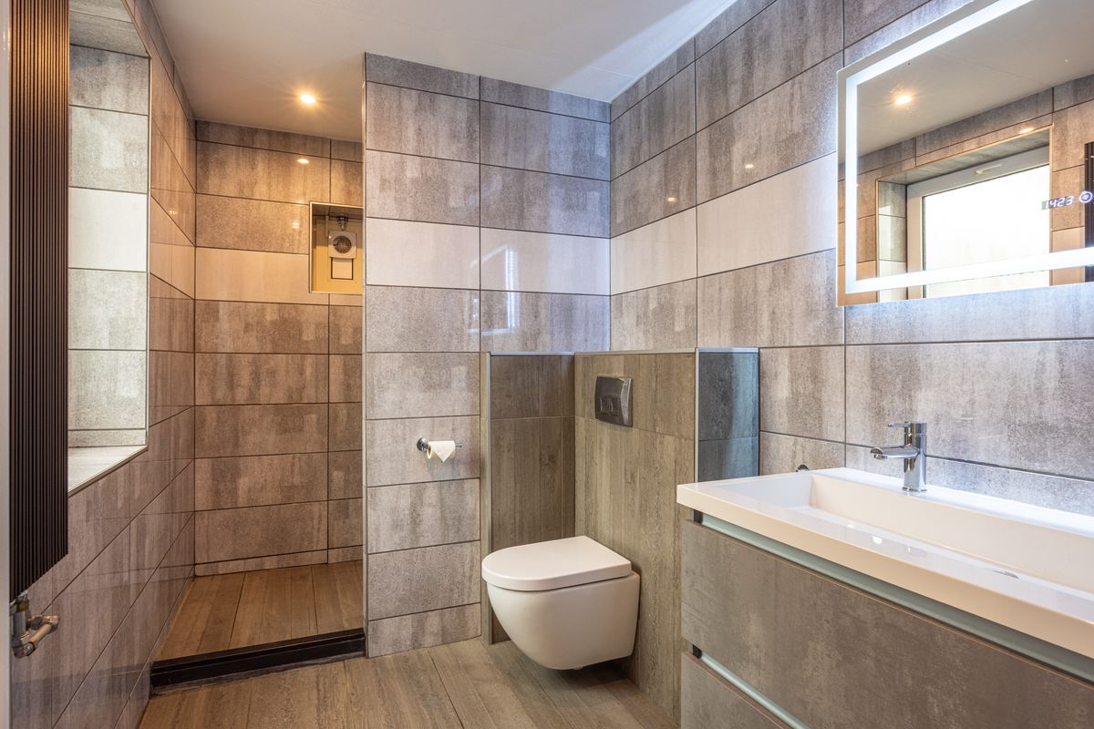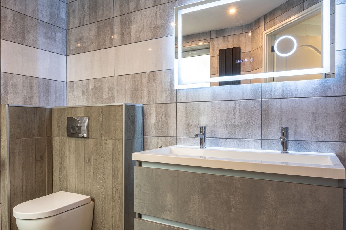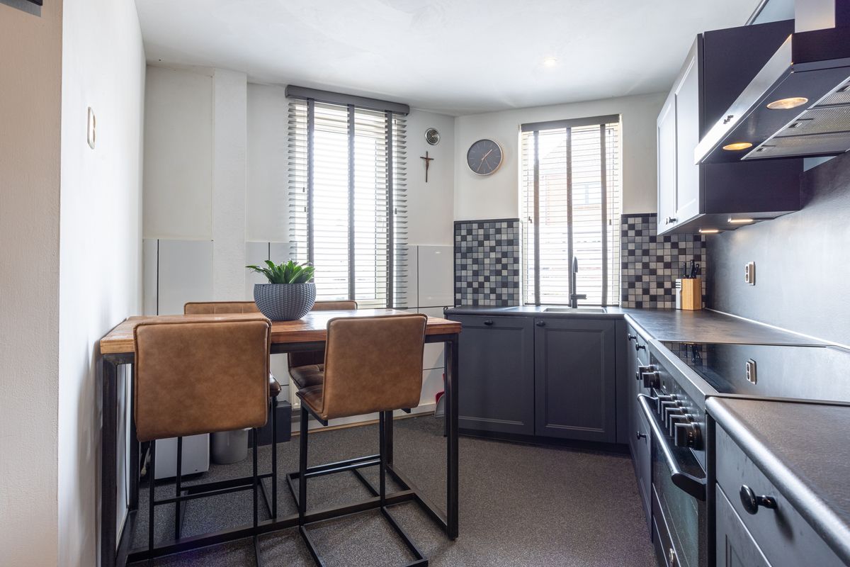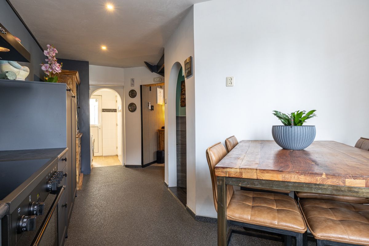 Dankzij de hoekopstelling is er veel werk- en kastruimte. De keuken is uitgerust met een 5-pits inductiekookplaat, afzuigkap, heteluchtoven met grillfunctie, koelkast, vriezer en vaatwasser. Extra praktisch is de inloopkast voor voorraadopslag. Vanuit de keuken heb je bovendien toegang tot de provisiekelder. Aansluitend aan de keuken ligt de bijkeuken met cv-installatie, witgoedaansluitingen en toegang tot zowel de badkamer als de tuinkamer. De badkamer is in 2024 volledig vernieuwd en modern uitgevoerd met een badkamermeubel met dubbele wasbak, spiegel met verlichting, inloopdouche, zwevend toilet en een designradiator.