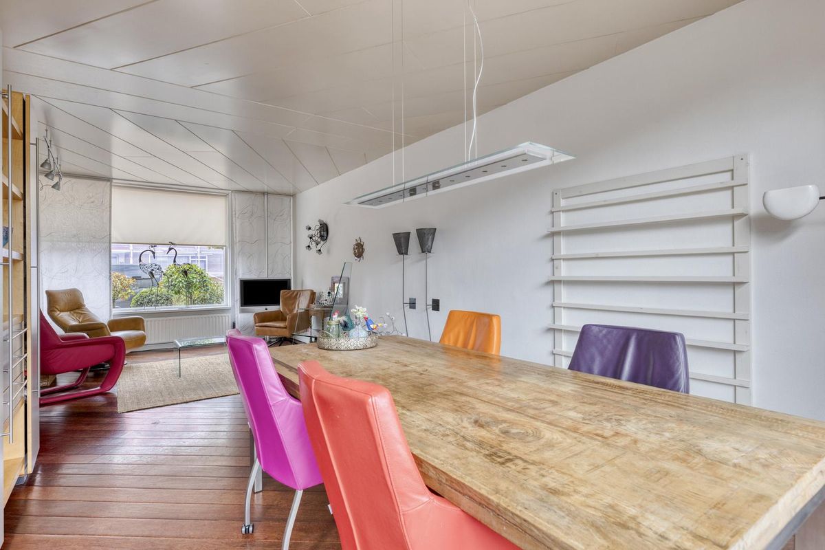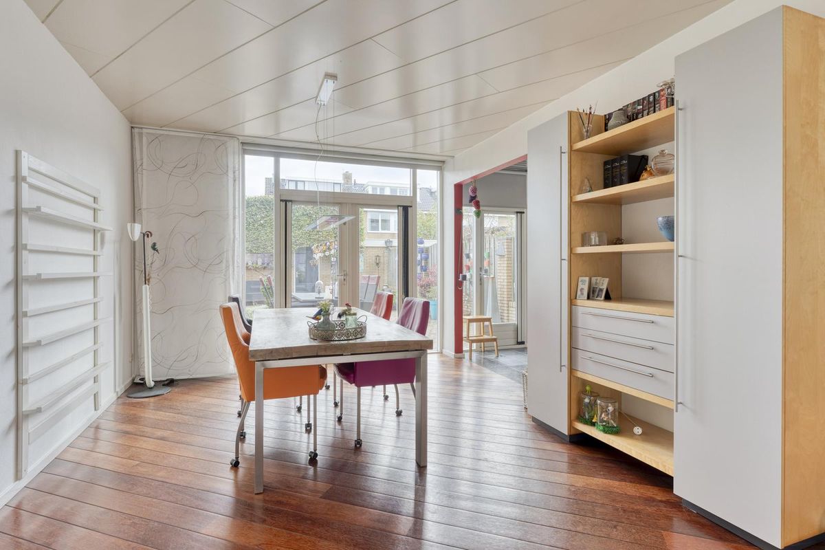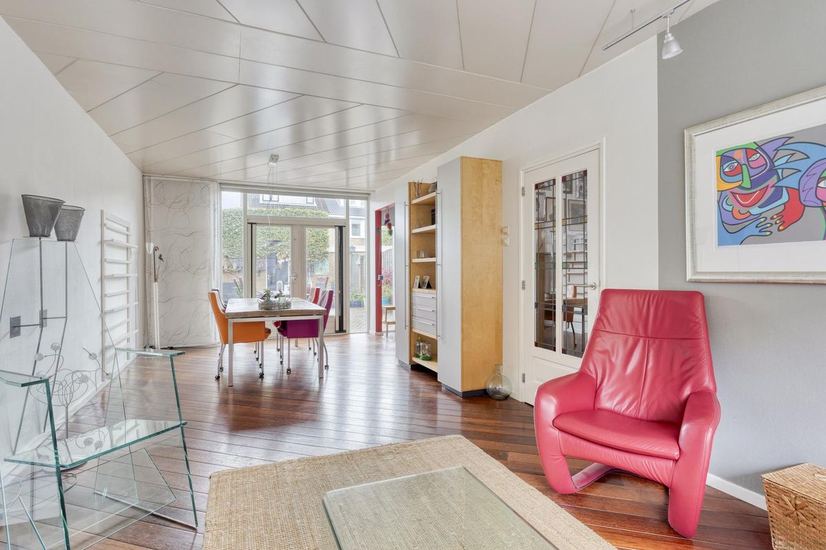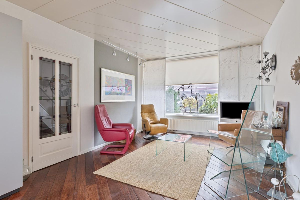 De woonkamer voelt direct ruim en uitnodigend aan dankzij de fijne lichtinval en de open indeling. De openslaande deuren naar de tuin zorgen voor een naadloze overgang tussen binnen en buiten – perfect voor zomerse dagen of gezellige borrels.