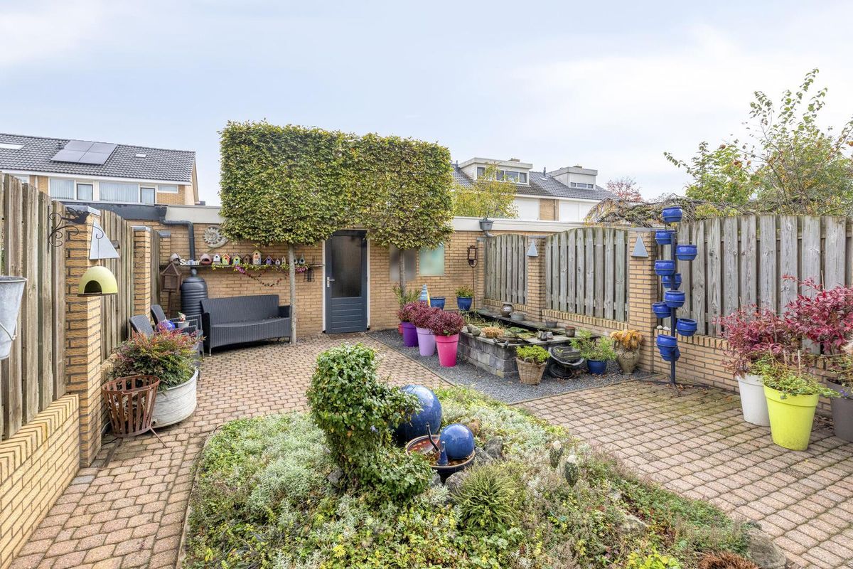 Achterin de tuin staat een ruime stenen berging, perfect voor fietsen, tuingereedschap of hobbyspullen. Via de handige achterom bereik je eenvoudig de straatzijde.